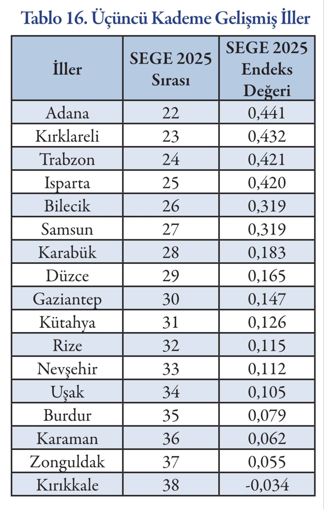 SEGE-2025 çalışmasıyla Türkiye genelinde iller, 6 kademede sınıflandırıldı.