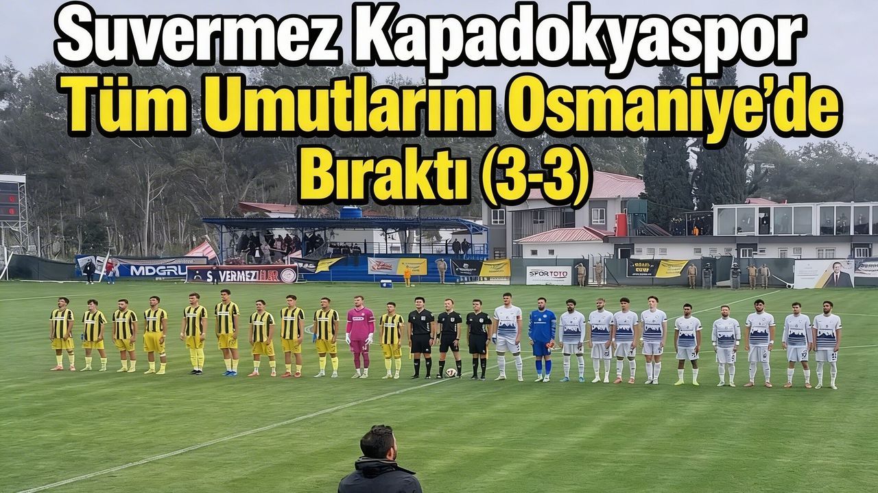 Dakikalar 83’ü gösterdiğinde Osmaniyespor, Yunus Nas ile öne geçti (3-2). Maçın son bölümünde baskısını artıran Suvermez Kapadokyaspor, 88. dakikada bir kez daha Osman Emirkan Demir ile gol bularak skoru 3-3’e getirdi ve sahadan beraberlikle ayrıldı.