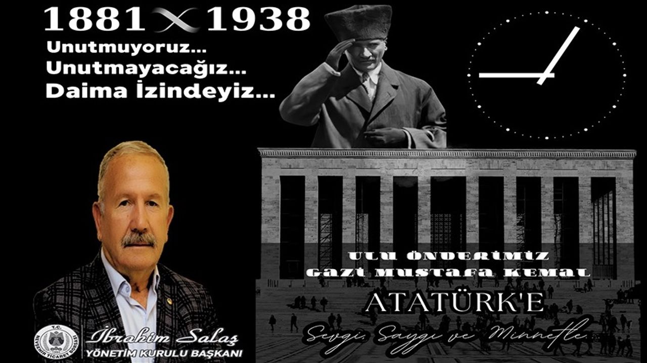 Nevşehir Ticaret Borsası (NTB) Yönetim Kurulu Başkanı İbrahim Salaş, Gazi Mustafa Kemal Atatürk’ün vefatının 87. yıl dönümü dolayısıyla bir mesaj yayımladı. Salaş, mesajında Atatürk’ü rahmet, minnet ve şükranla andıklarını ifade etti.