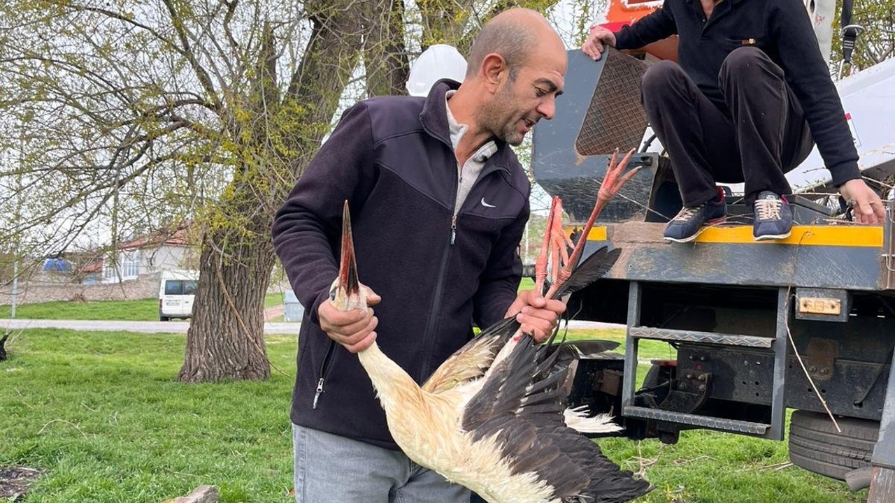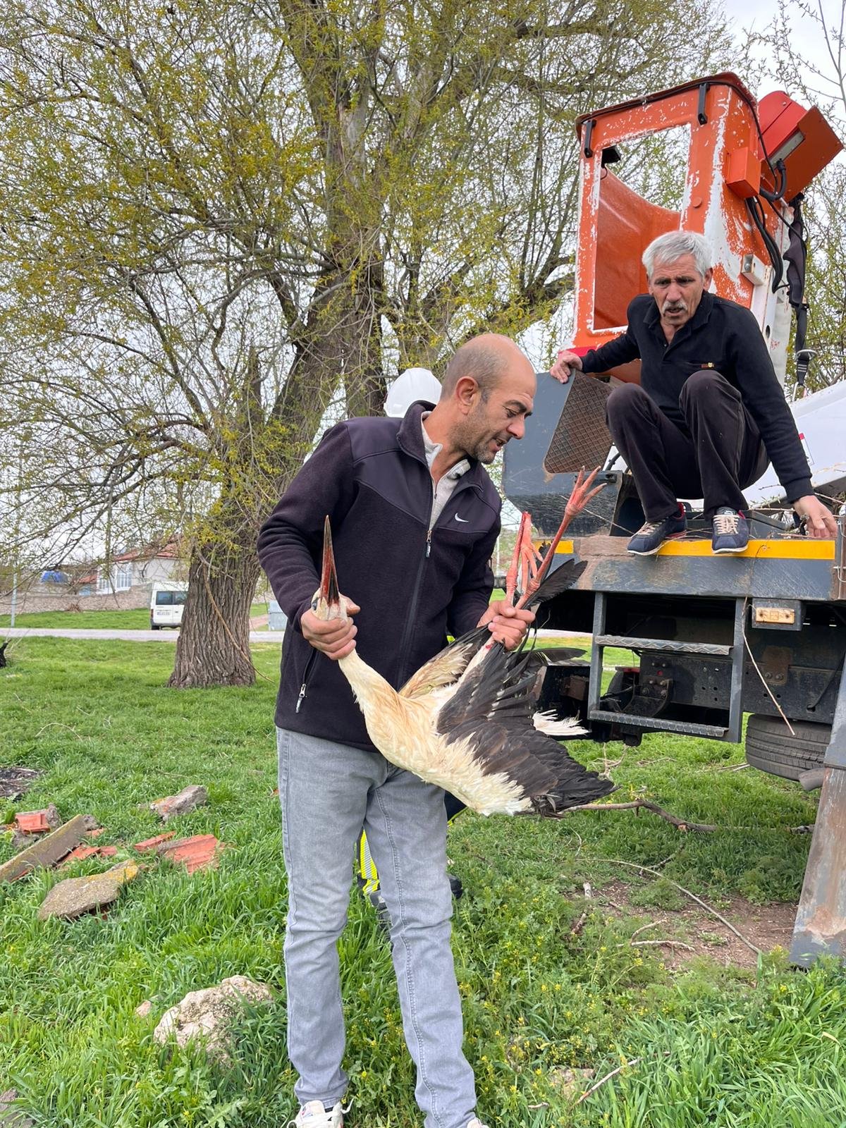Kısa sürede olay yerine ulaşan ekipler ve köy sakinlerinin ortak çalışmasıyla leylek dikkatli bir şekilde bulunduğu yerden indirildi. Sağlık durumu kontrol edilen ve ayağında kırık tespit edilen leylek, daha sonra Üçkuyu Köyü Muhtarı Ercan Güven aracılığıyla Nevşehir Doğa Koruma ve Milli Parklar Şube Müdürlüğü ekiplerine teslim edildi.