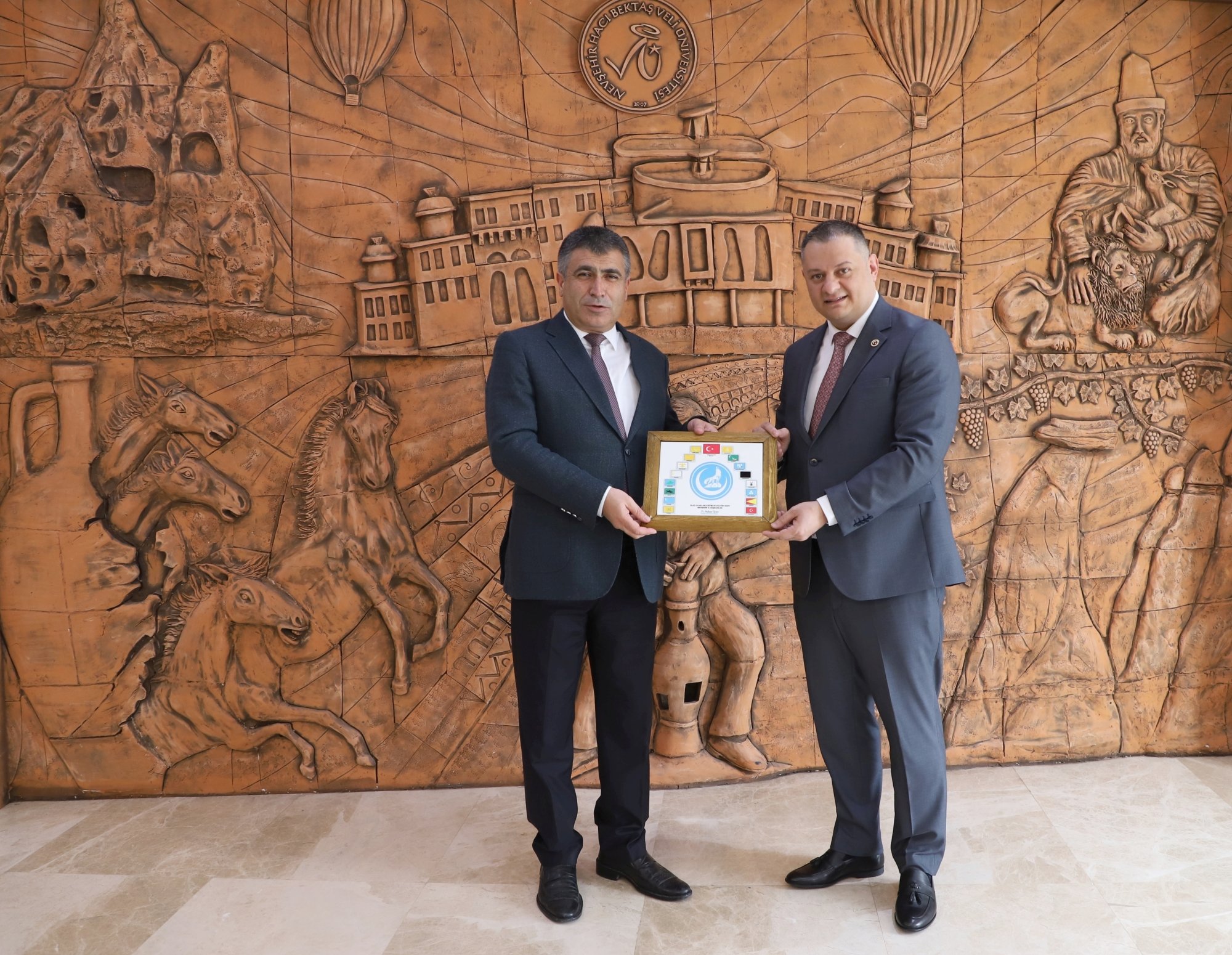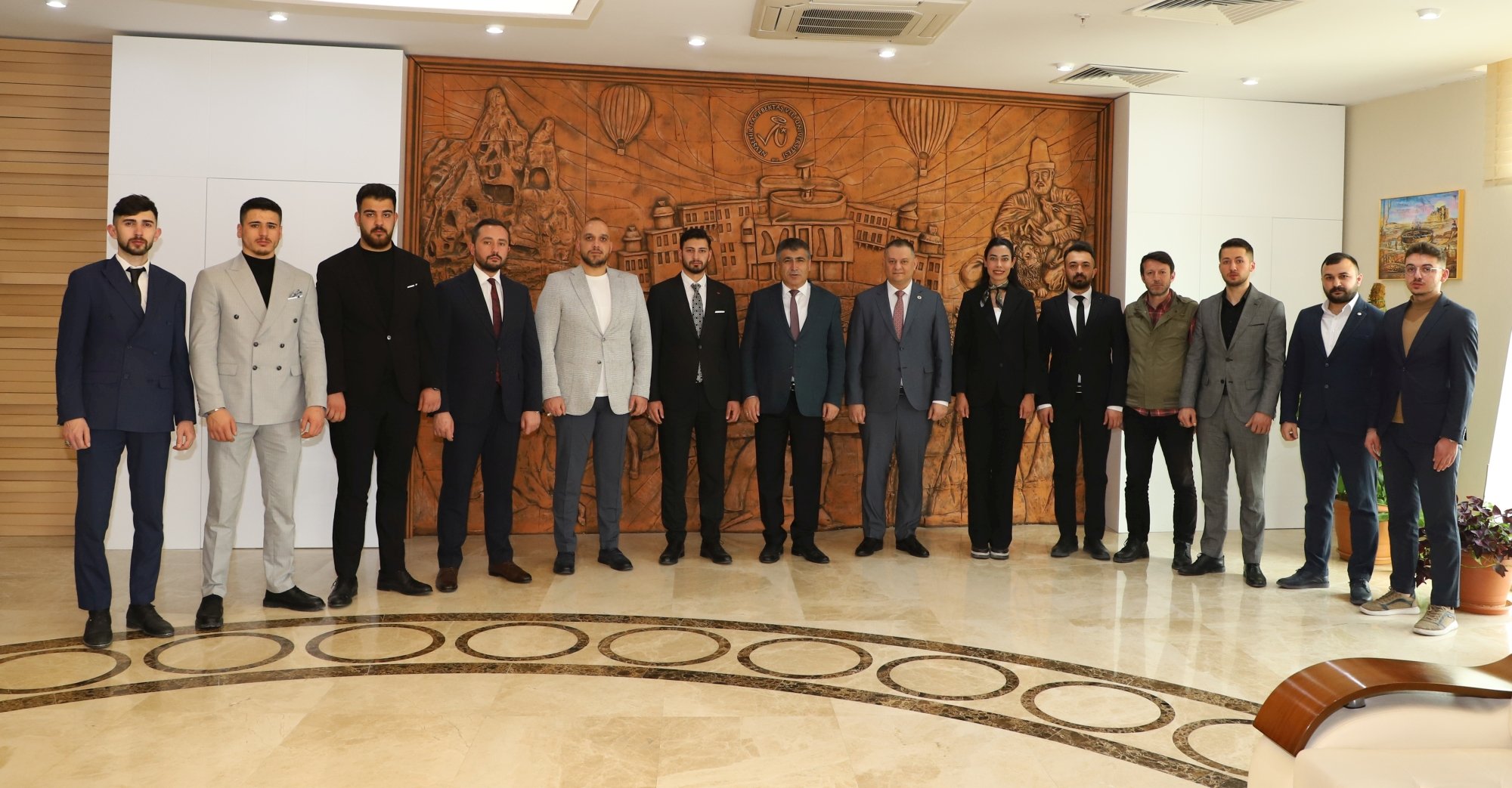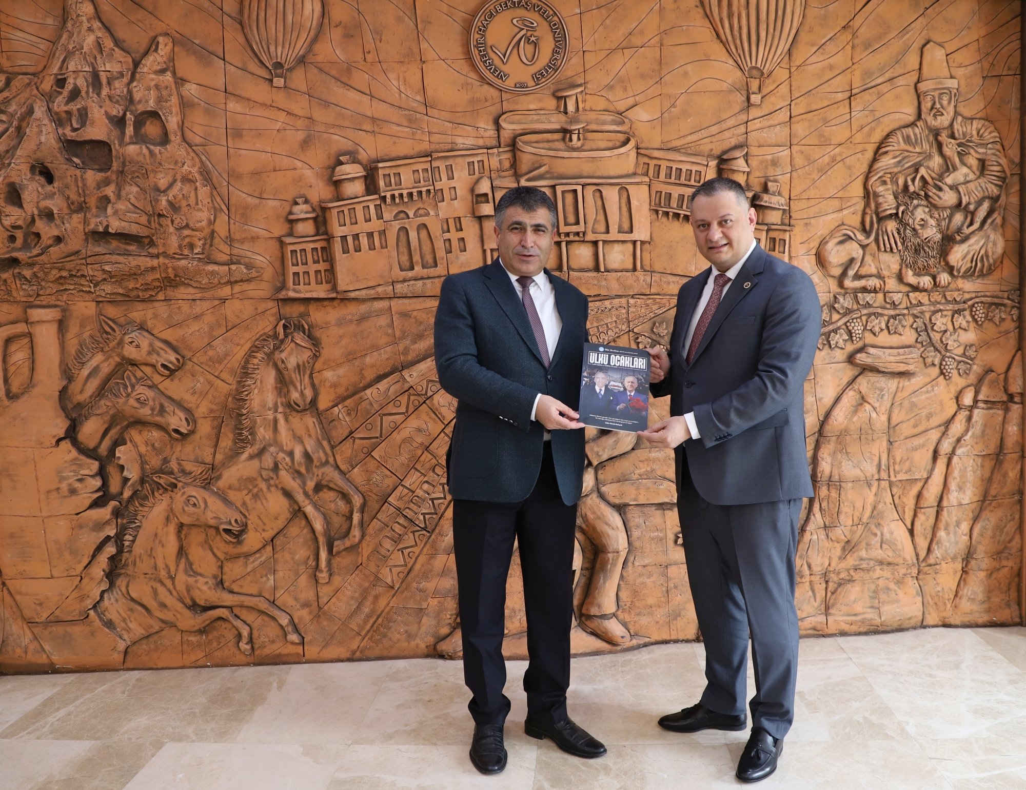 Nevşehir Ülkü Ocakları İl Başkanı Dr. Öğr. Üyesi Mehmet Uçar ve beraberindeki yönetim kurulu üyeleri, Nevşehir Hacı Bektaş Veli Üniversitesi (NEVÜ) Rektörü Prof. Dr. Semih Aktekin’i makamında ziyaret etti.