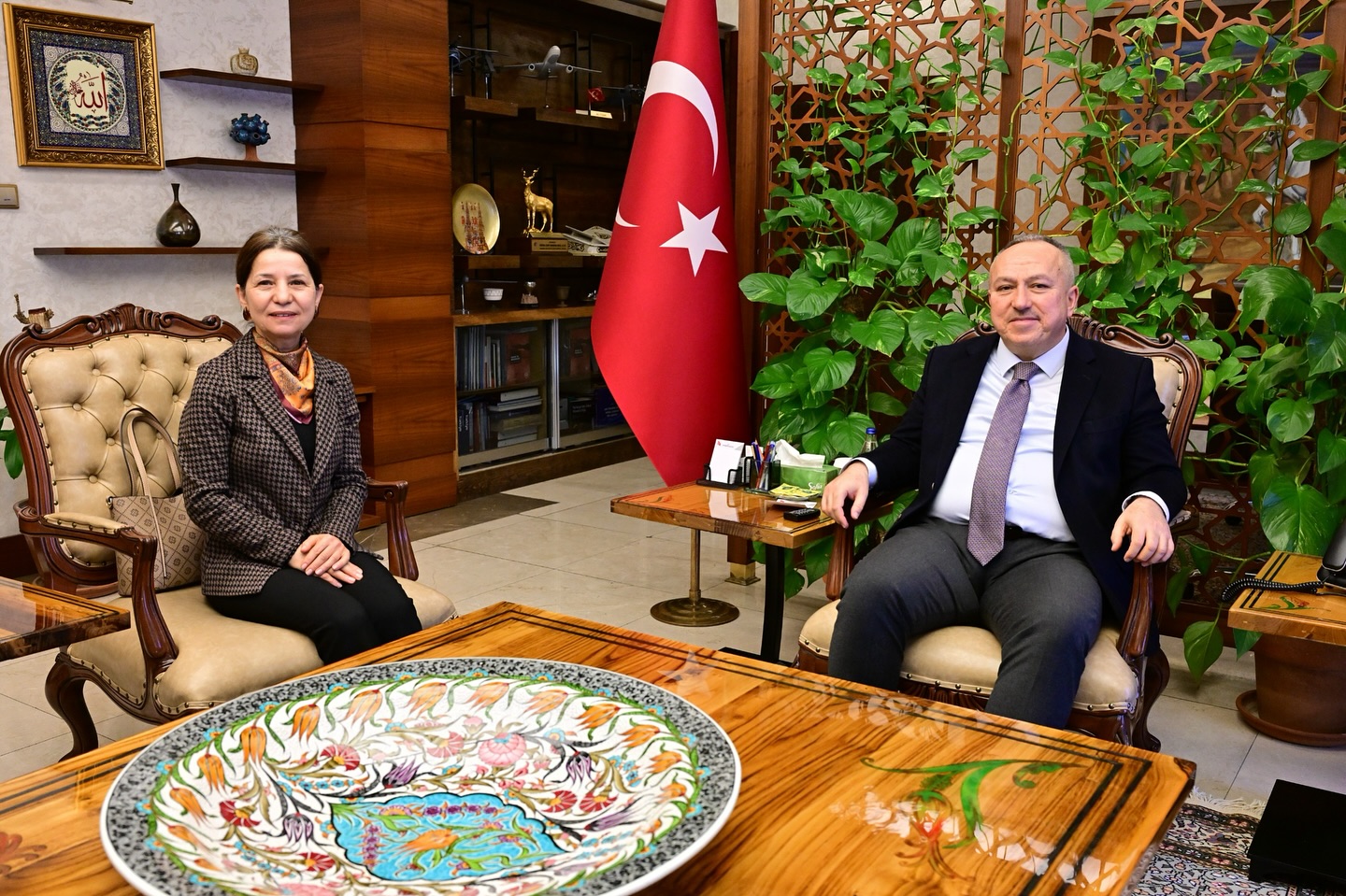 Vali Ali Fidan’ın bir diğer konuğu ise Ürgüp Abraş Cave Otel Sahibi Gülizar Karakaş oldu. Görüşmede, Kapadokya turizmi, konaklama sektörü ve bölge turizminin sürdürülebilir şekilde geliştirilmesine yönelik değerlendirmelerde bulunuldu.