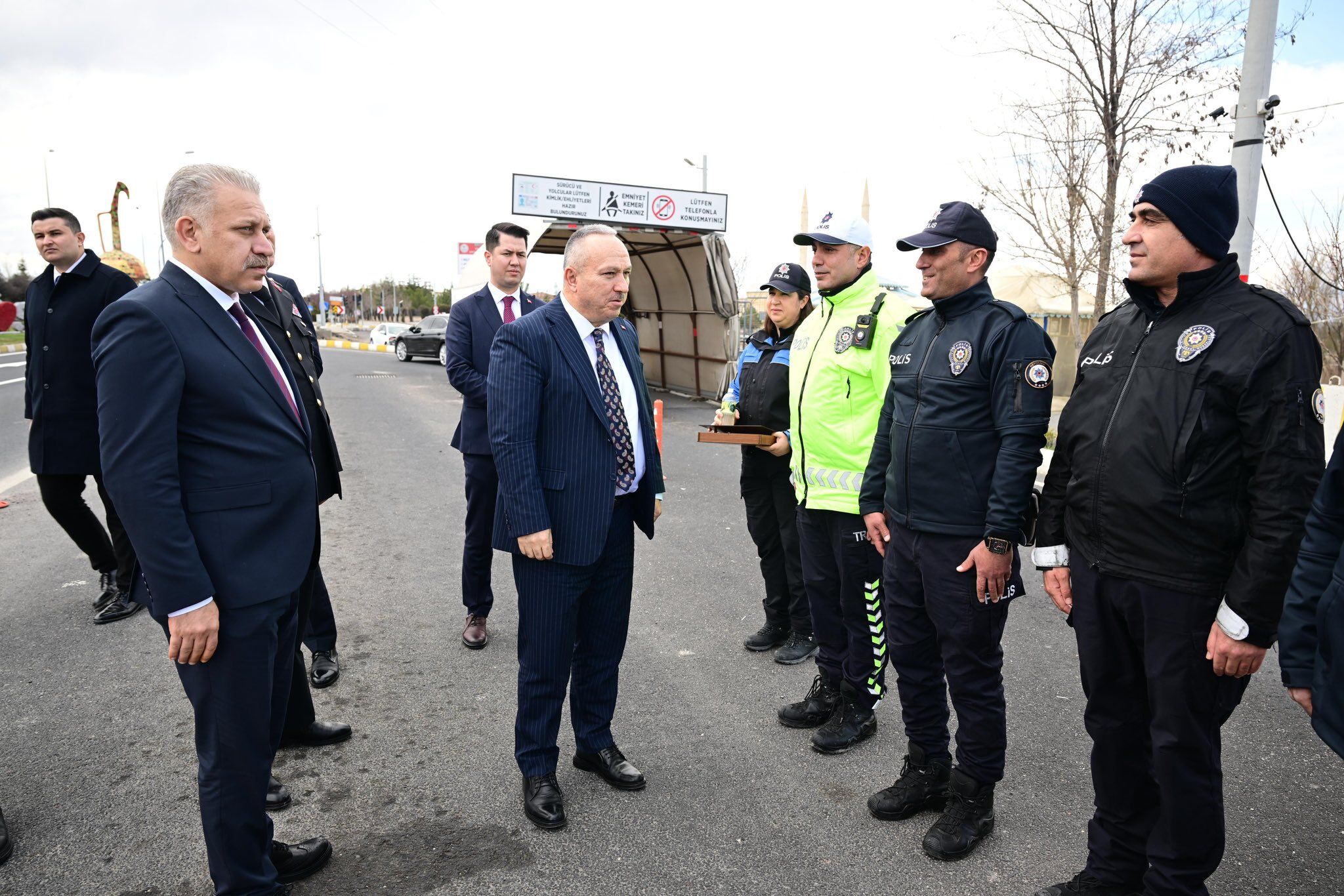 Ramazan Bayramı tatilinde kazaları en aza indirmek için Nevşehir ili genelinde emniyet ve jandarma birimleri vatandaşların trafik güvenliği için denetimlerini aralıksız sürdürüyor. Nevşehir Valisi Ali Fidan, Ramazan Bayramı dolayısıyla İl Emniyet Müdürü Serkan Karaman ve İl Jandarma Komutanı J. Kd. Alb. Mehmet Çelik ile birlikte şehir girişinde kurulan yol kontrol ve uygulama noktalarını ziyaret ederek güvenlik görevlileriyle bir araya geldi. Ziyaret, bayram süresince yol güvenliğinin ve vatandaşların huzurunun sağlanmasına dikkat çekti.