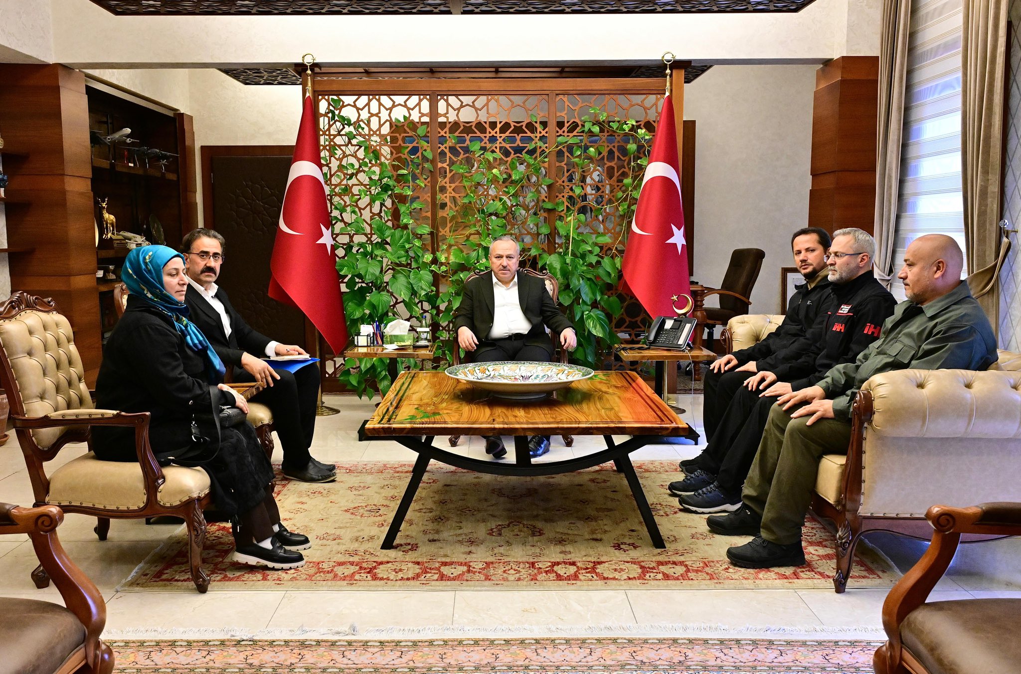 Ardından, İHH Nevşehir Yönetim Kurulu Üyeleri —Tuncay Sesli, Ali Akarsu, Sevgi Yılmaz, Mehmet Peköz ve Oğuz Süleyman Albayrak— Vali Fidan’ı ziyaret ederek derneğin insani yardım faaliyetleri hakkında bilgi verdiler.