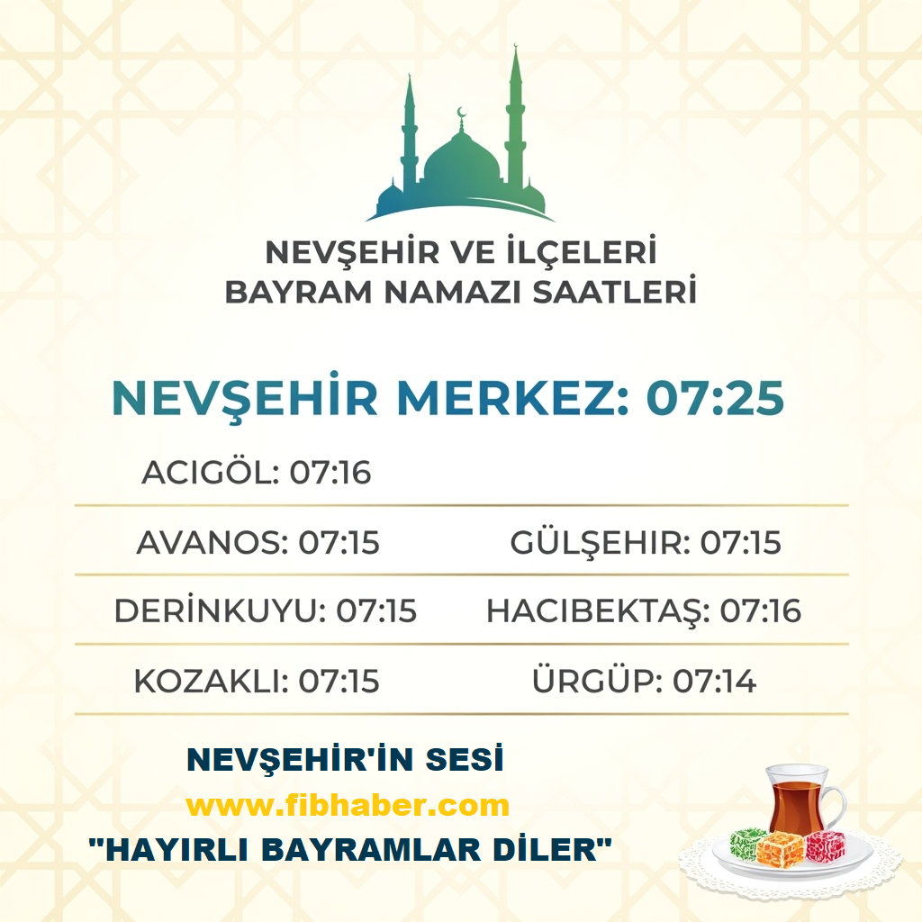 Din İşleri Yüksek Kurulu Başkanlığı verilerine göre Nevşehir ve ilçelerinde Ramazan Bayram Namazı şu saatlerde kılınacak: