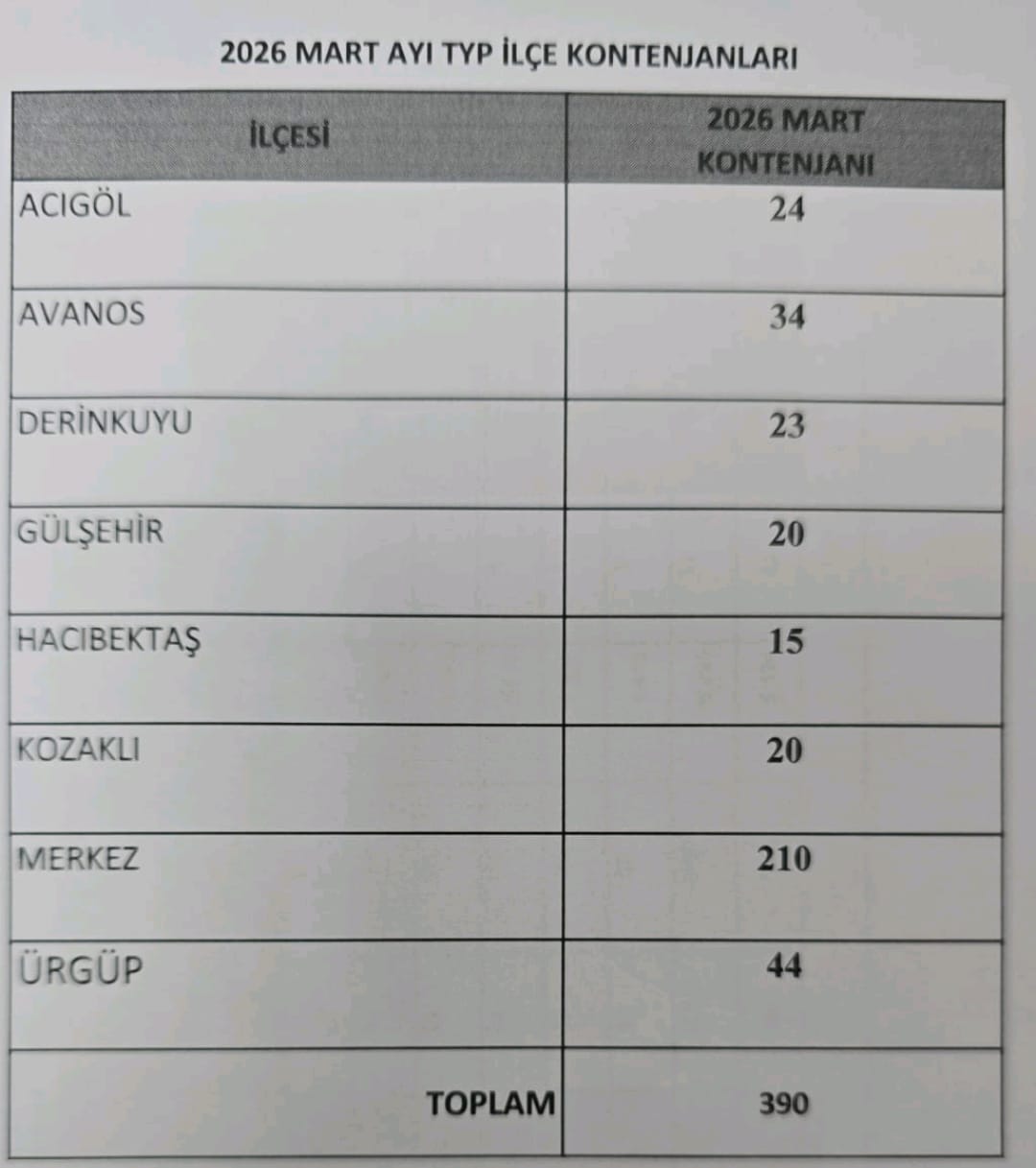 2026 Mart ayı için belirlenen 390 kişilik kontenjanın ilçelere göre dağılımı ise şu şekilde: