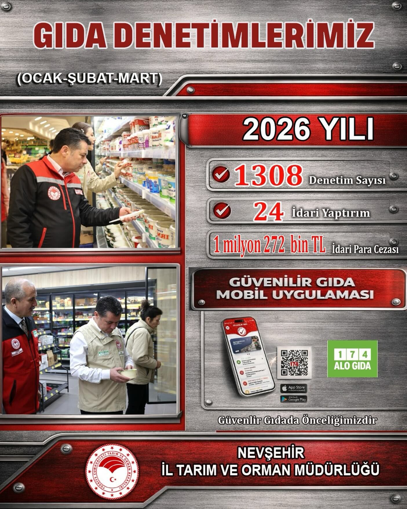 Nevşehir İl Tarım ve Orman Müdürlüğü tarafından yapılan açıklamada, halk sağlığının korunmasının öncelikli hedef olduğu vurgulanarak, vatandaşların güvenilir gıdaya ulaşabilmesi için denetimlerin kararlılıkla devam edeceği ifade edildi.