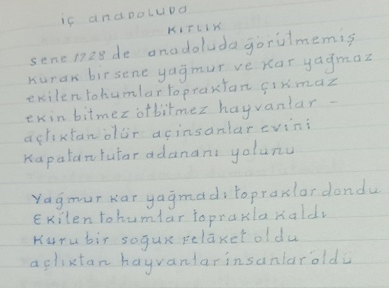 Kıtlığı şiirle de anlatmış