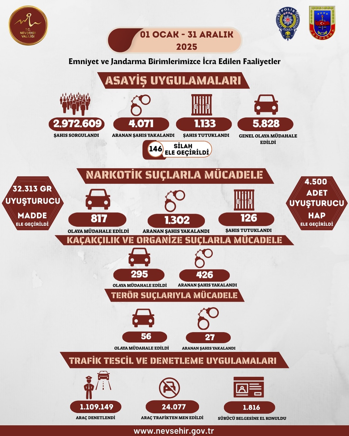 İşte Nevşehir’de Güvenlikte Rakamlarla 2025;