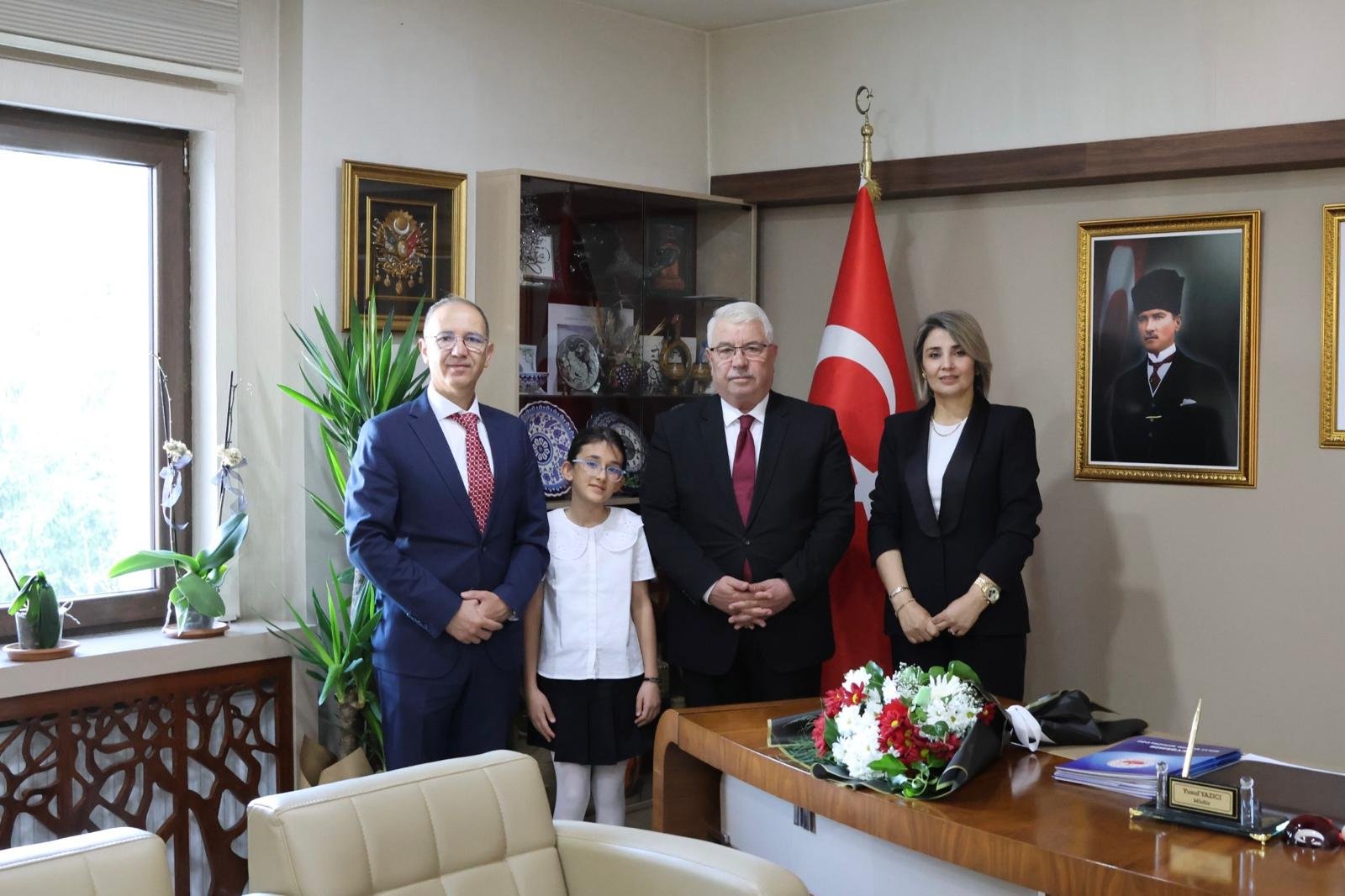 Öte yandan temsili makam devri kapsamında İl Millî Eğitim Müdürü koltuğunu da aynı okuldan 5. sınıf öğrencisi Aymira Koçak devraldı. İl Millî Eğitim Müdürü Yusuf Yazıcı, Aymira Koçak’ın şahsında tüm çocukların bayramını kutlayarak kendisine hediye takdim etti.