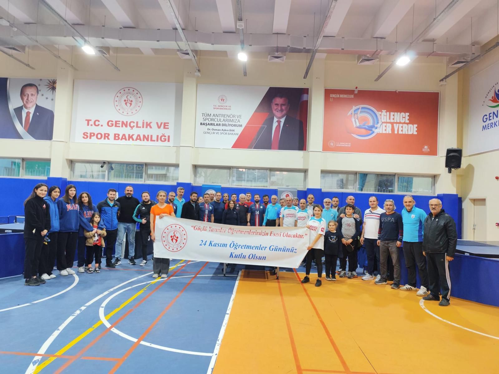 24 Kasım Öğretmenler Günü etkinlikleri kapsamında 19–20 Kasım tarihlerinde öğretmenler arasında gerçekleştirilen Masa Tenisi Turnuvası, keyifli ve heyecan dolu anlara sahne oldu. İl genelindeki farklı okullardan çok sayıda öğretmenin katılımıyla gerçekleşen turnuva, hem sportif rekabeti hem de eğitim camiası arasındaki dostluk ve dayanışmayı güçlendirdi.