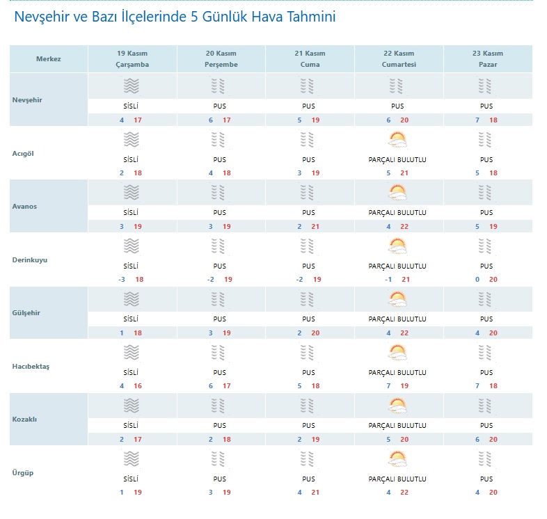 Nevşehir ve İlçelerinde 5 Günlük Hava Tahmini