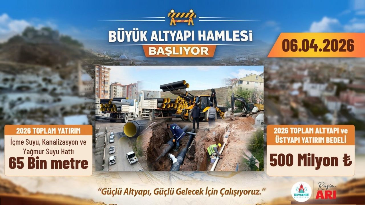 06 Nisan 2026 Pazartesi günü Nevşehir Belediye Başkanımız Rasim Arı tarafından verilecek startla Nevşehir Belediyesi’nin bütün müdürlükleri ve birimleri dev altyapı ve üstyapı çalışmalarına büyük bir gayret ve büyük bir şevkle başlamış olacak.