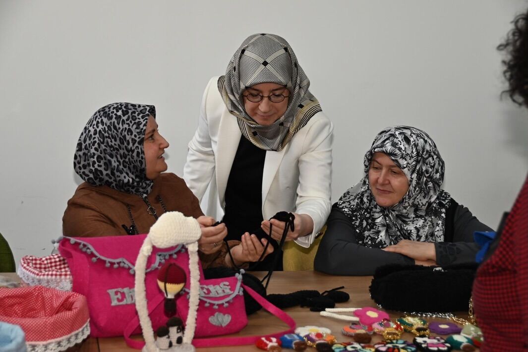 ADEM’de el sanatları, seramik ve dikiş-nakış kursları yürütülüyor. Prof. Dr. Fatma Fidan, kursiyerler ve eğiticilerle gerçekleştirdiği sohbetlerde, gösterilen gayretin ve emeğin değerini vurguladı.