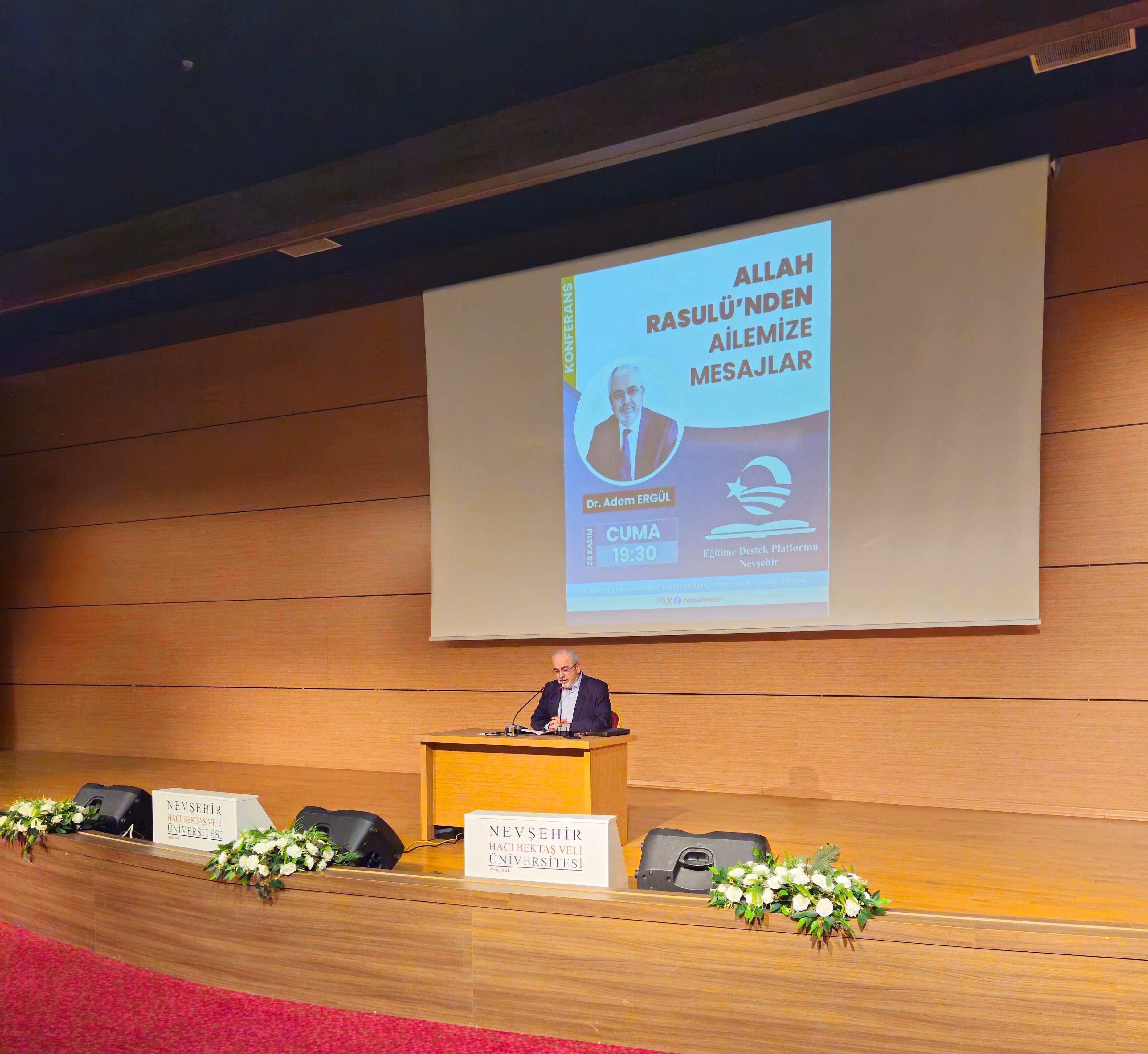 Nevşehir Eğitime Destek Platformu tarafından organize edilen ve aile kurumunun manevi temellerinin ele alındığı “Allah Rasulü'nden Ailemize Mesajlar” konulu konferans, büyük bir katılımla gerçekleştirildi.