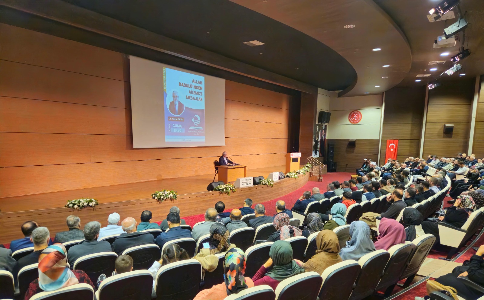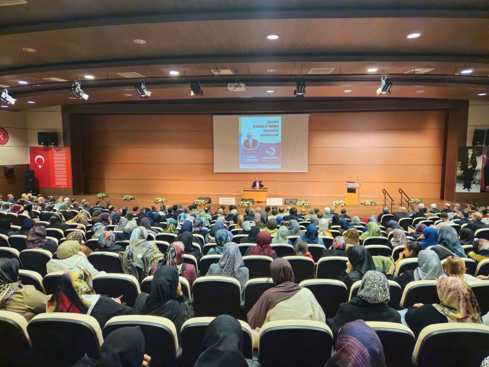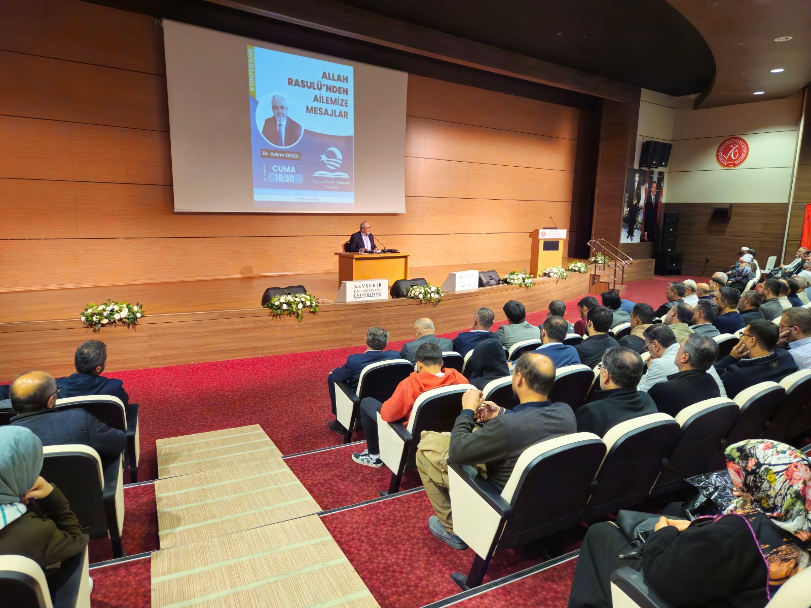 Nevşehir Hacıbektaş Veli Üniversitesi Kültür ve Kongre Merkezi Karavezir Salonu’nda düzenlenen programa, konuşmacı olarak Dr. Adem Ergül katıldı. 28 Kasım Cuma akşamı saat 19.30’da başlayan etkinlik, Nevşehir halkı tarafından yoğun ilgi gördü.