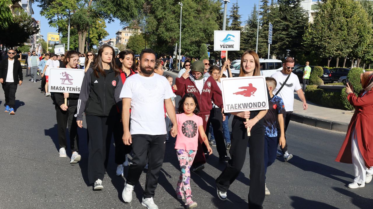 Nevşehir Valiliği önünden başlayan kortej yürüyüşü, Nevşehir Gençlik ve Spor İl Müdürlüğü Spor Kompleksinde sona erdi.