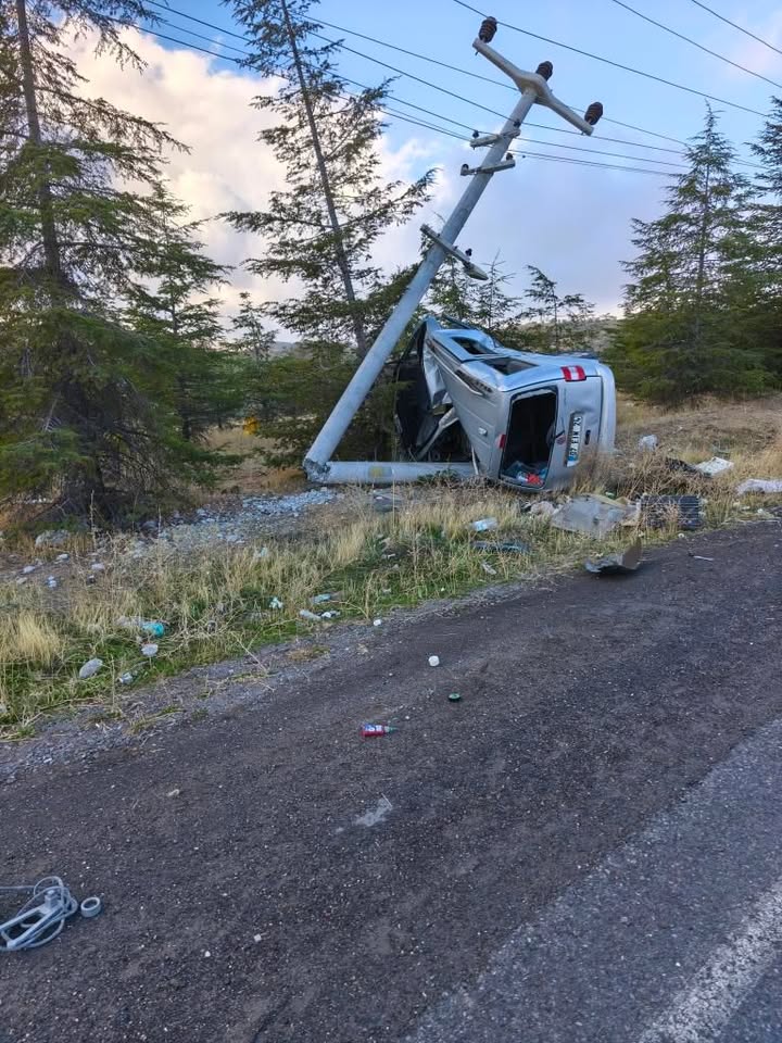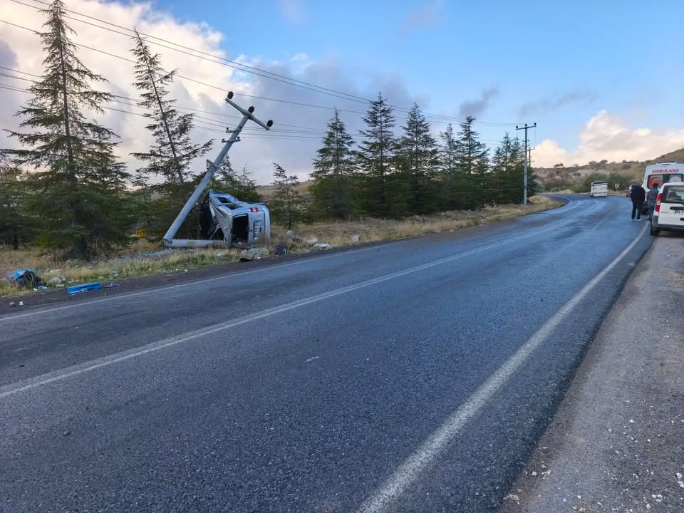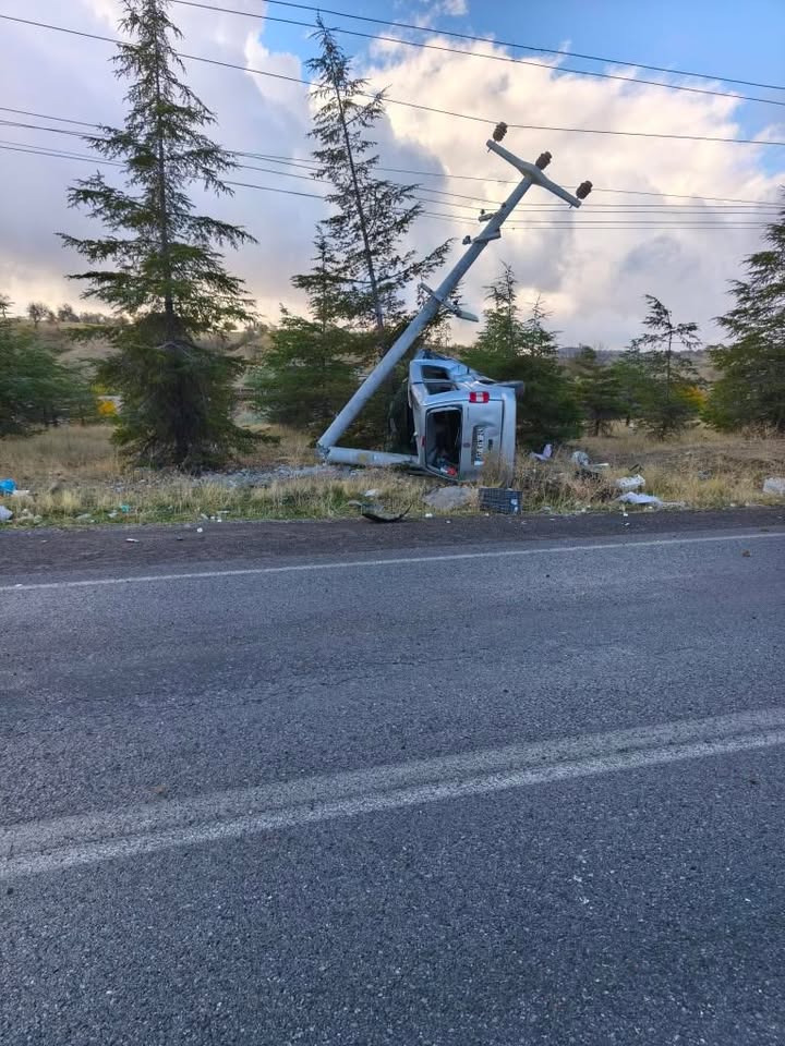 Kaza anında aracın ön kısmında ciddi hasar meydana gelirken, elektrik direği ortadan ikiye ayrıldı.