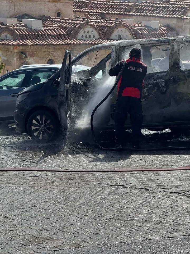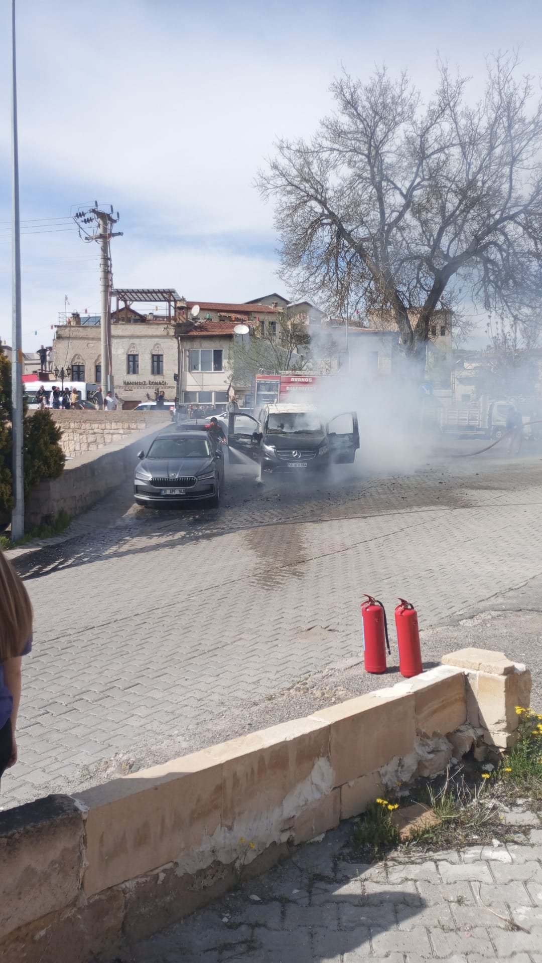 Nevşehir’in Avanos ilçesinde seyir halindeki bir araçta çıkan yangın paniğe neden oldu. Kısa sürede büyüyen alevler, park halindeki iki araca daha sıçrarken olayda can kaybı ya da yaralanma yaşanmadı.