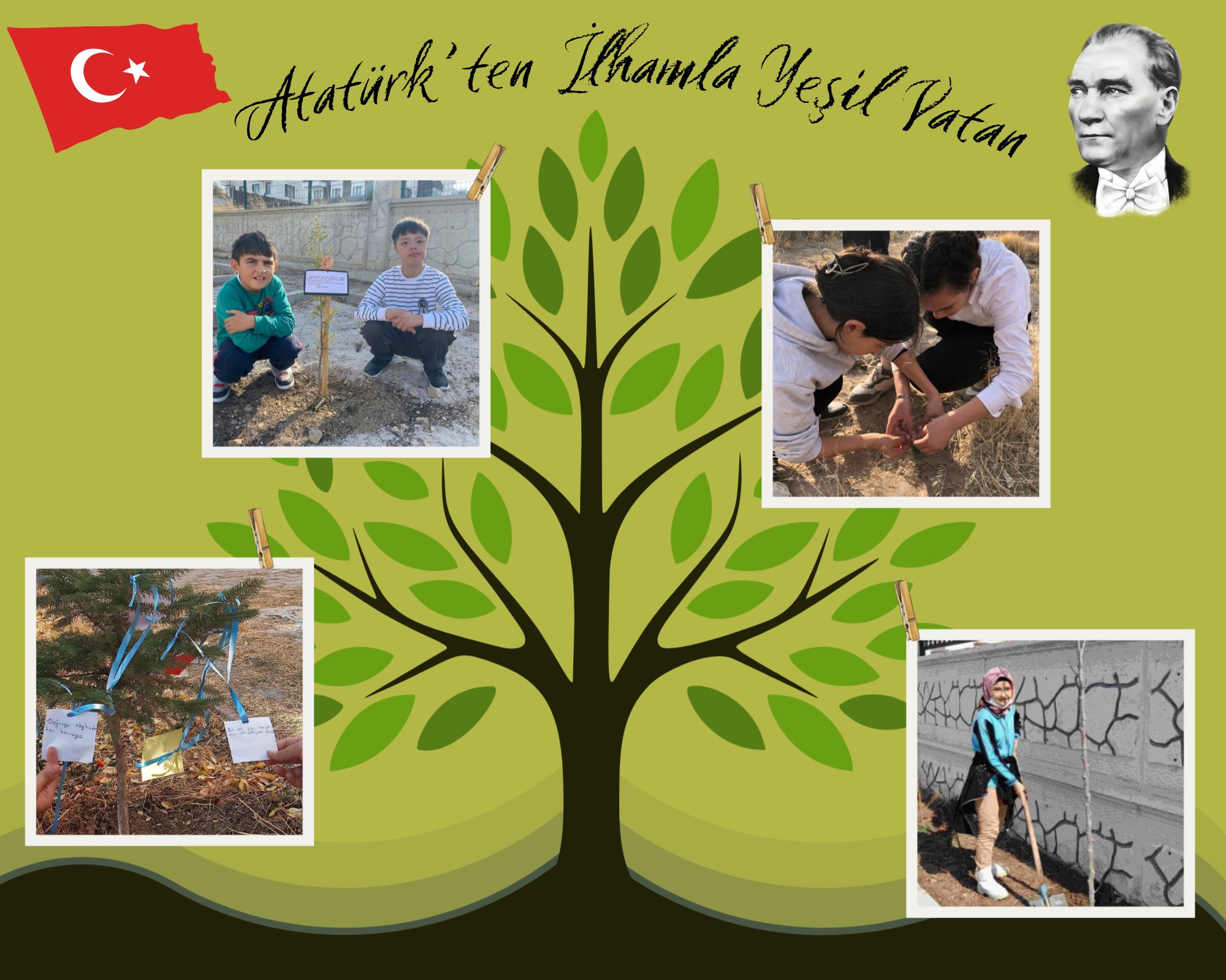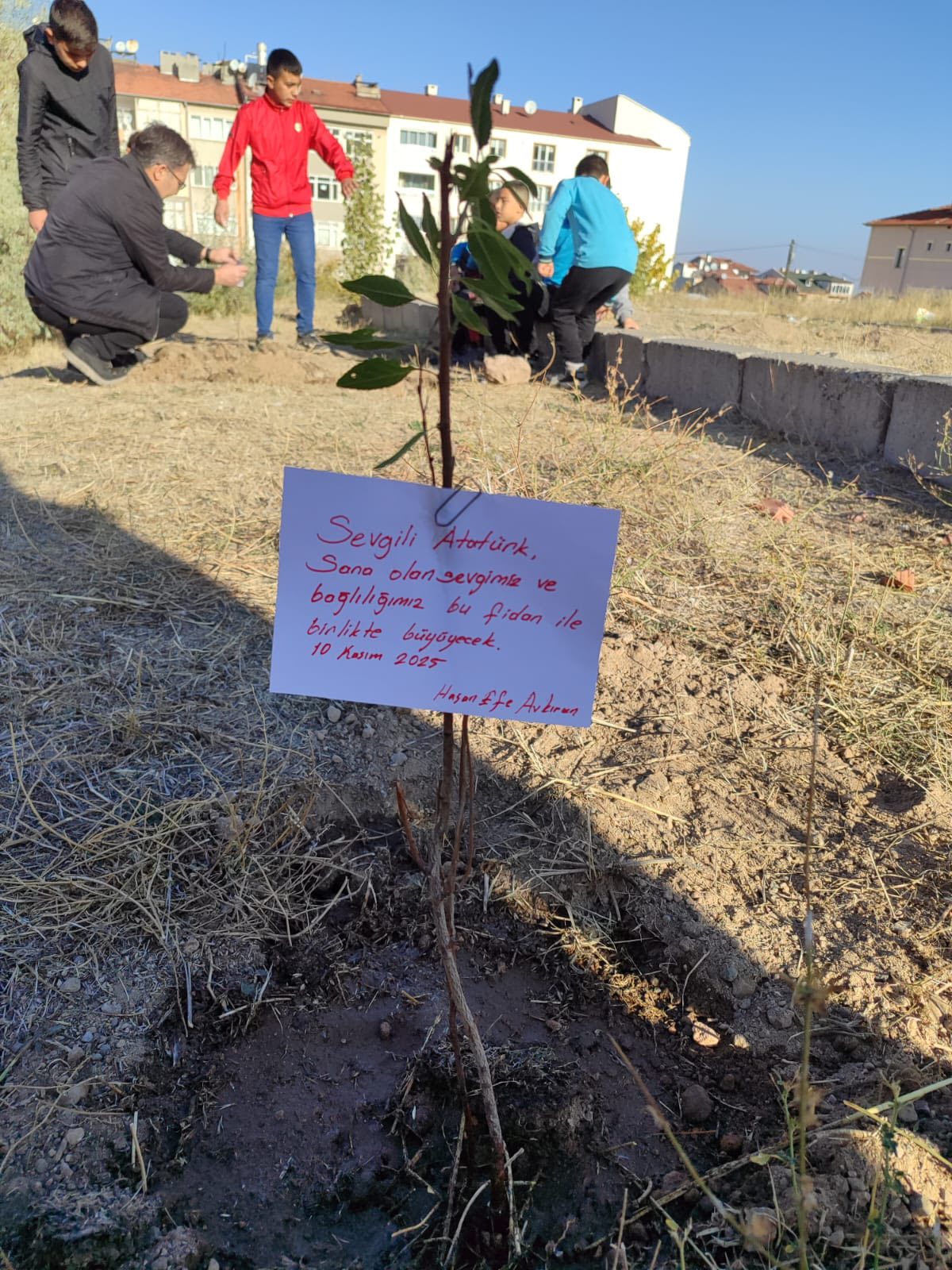 “İnsanı yaşatmak, değerleri yaşatmaktır” anlayışıyla gerçekleştirilen etkinliklere öğrenciler, öğretmenler ve veliler yoğun katılım gösterdi. Tüm eğitim kademelerinde öğrenciler, Atatürk’e ve vatan sevgisine dair duygu ve düşüncelerini ifade eden mesaj kartları hazırlayarak diktikleri fidanlara iliştirdiler.