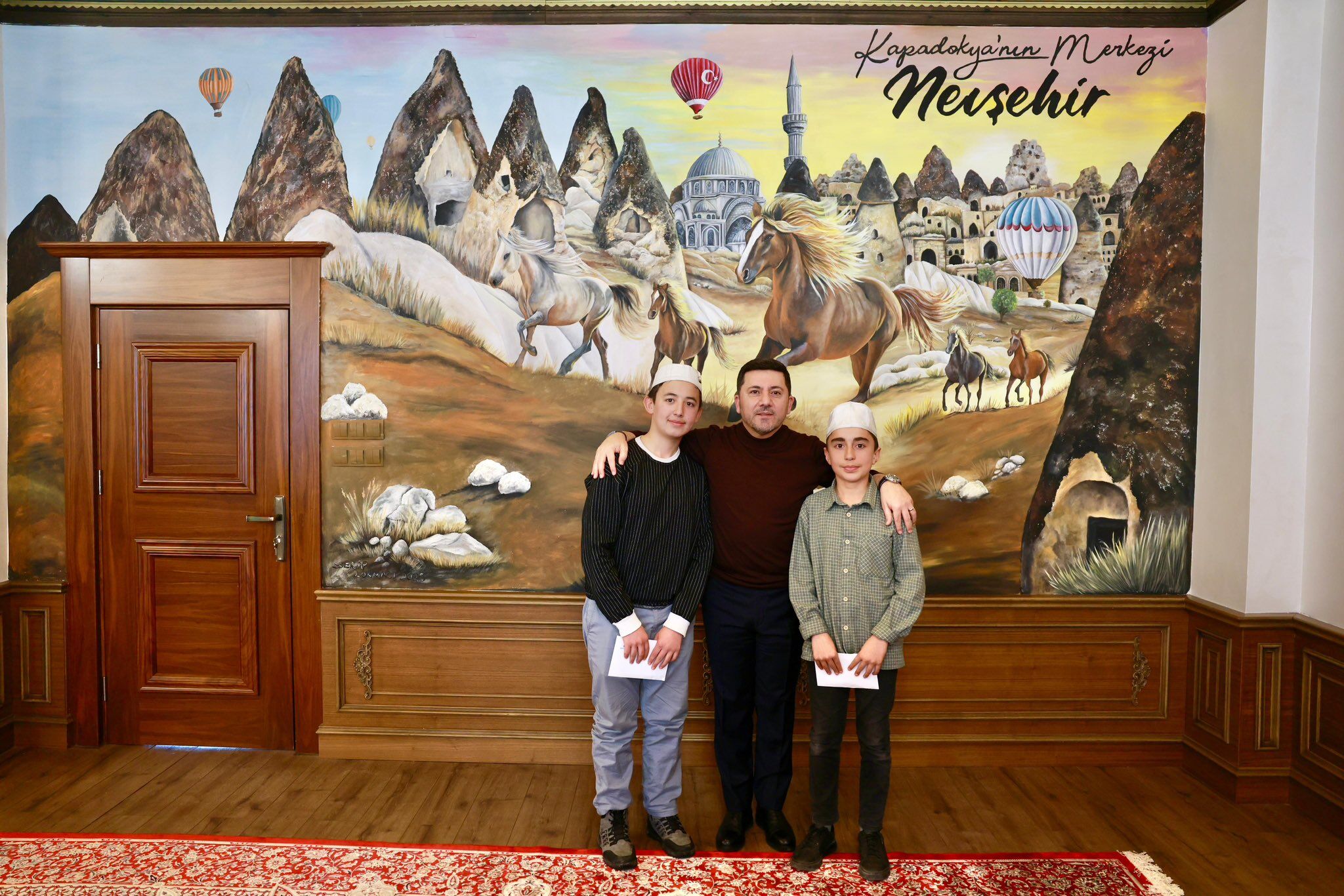 Nevşehir Belediye Başkanı Rasim Arı, Acıgöl ilçesine bağlı Karapınar Kasabası Kur’an Kursu’nda hafızlık eğitimi gören gençleri makamında kabul etti. Samimi bir ortamda gerçekleşen ziyarette Başkan Arı, genç hafızlarla sohbet ederek onların eğitim süreçleri hakkında bilgi aldı.
