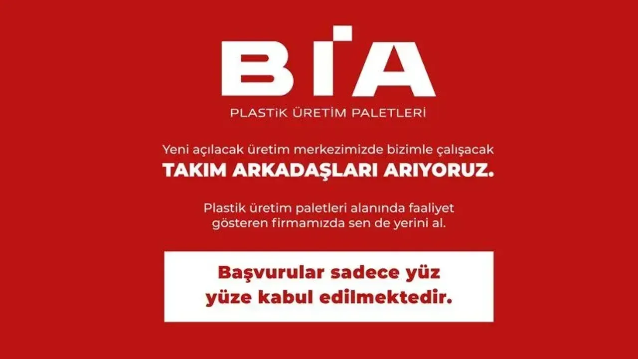 Bu kapsamda Bia Plastik Palet Ltd. Şti. bünyesinde çalıştırılmak üzere; 25-40 yaş arası, dolgun maaşla çalışacak vasıflı veya vasıfsız 15 çalışma arkadaşı alınacaktır.