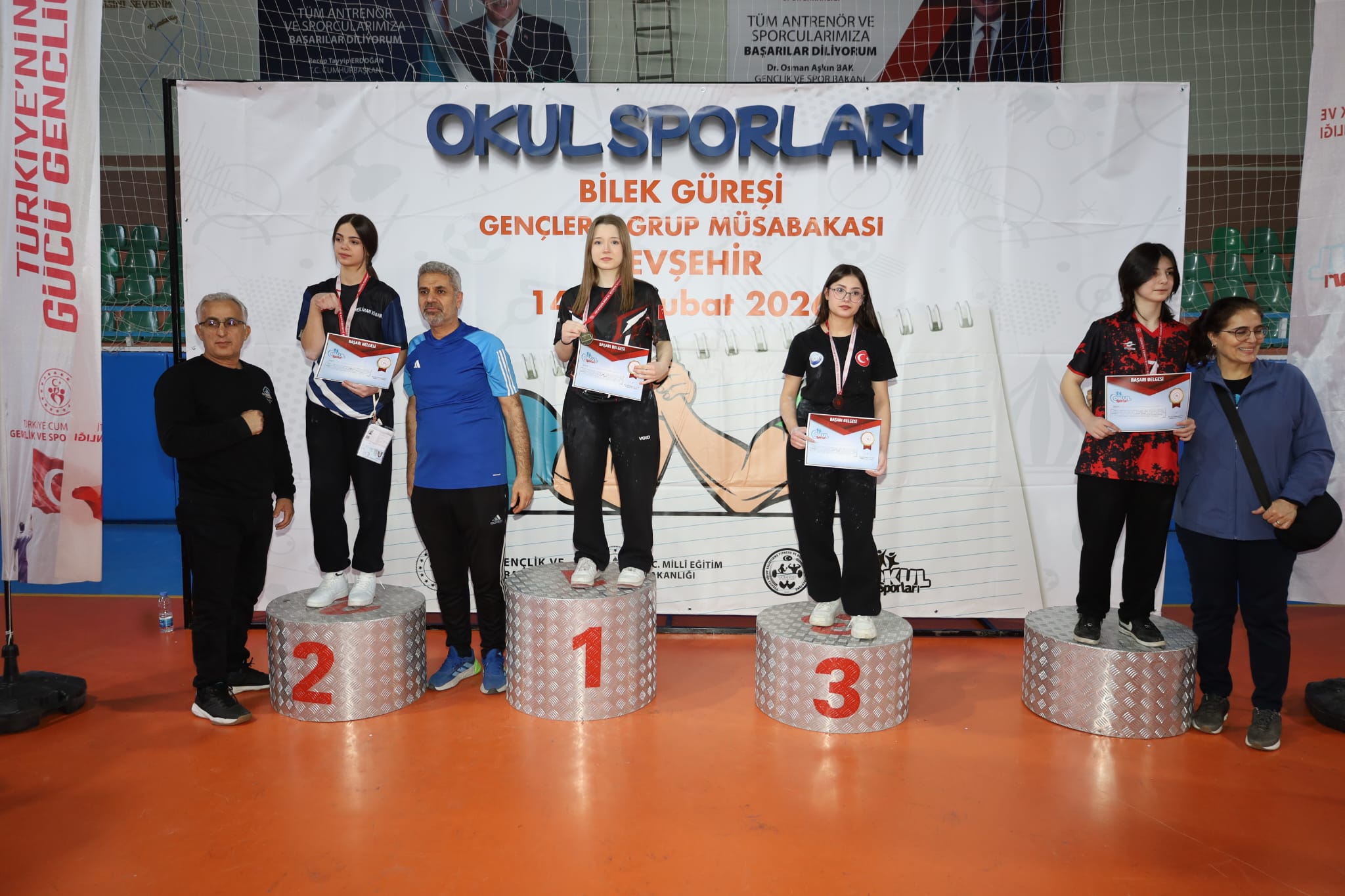 Nevşehir, Okul Sporları Bilek Güreşi Genç B (Kız-Erkek) Grup Müsabakalarına ev sahipliği yaparak iki gün boyunca büyük bir heyecana sahne oldu. Spor Hizmetleri Genel Müdürlüğü Okul Sporları Daire Başkanlığı’nın 2025-2026 Eğitim-Öğretim Yılı Faaliyet Programı’nda yer alan organizasyon, 14-15 Şubat 2026 tarihlerinde Damat İbrahim Paşa Spor Salonu’nda gerçekleştirildi.