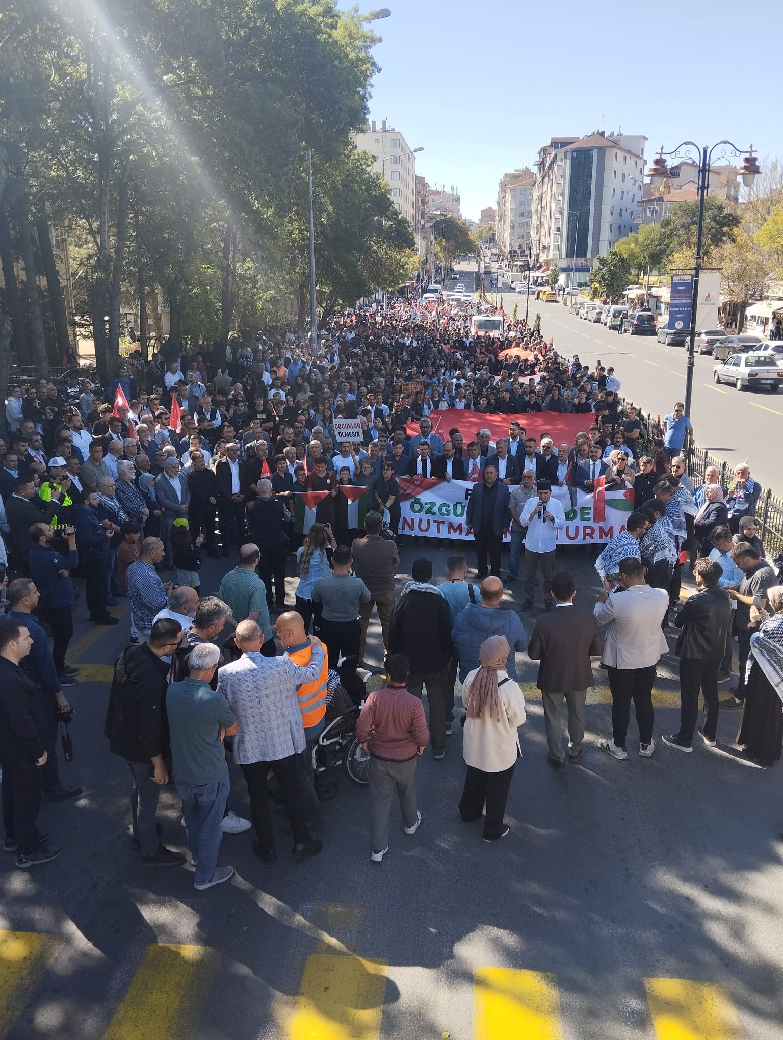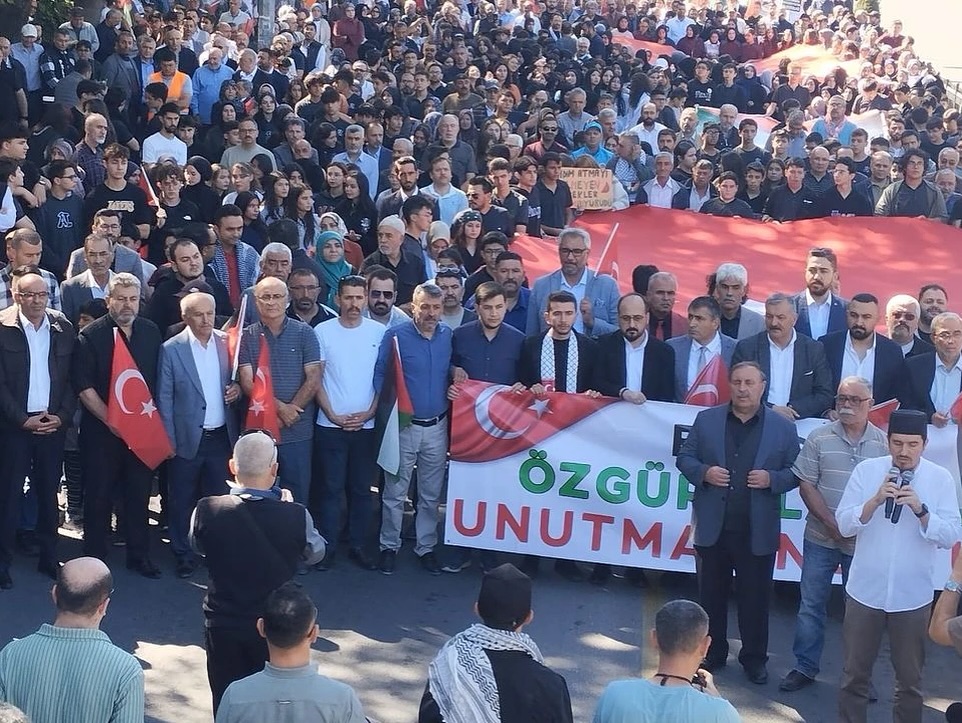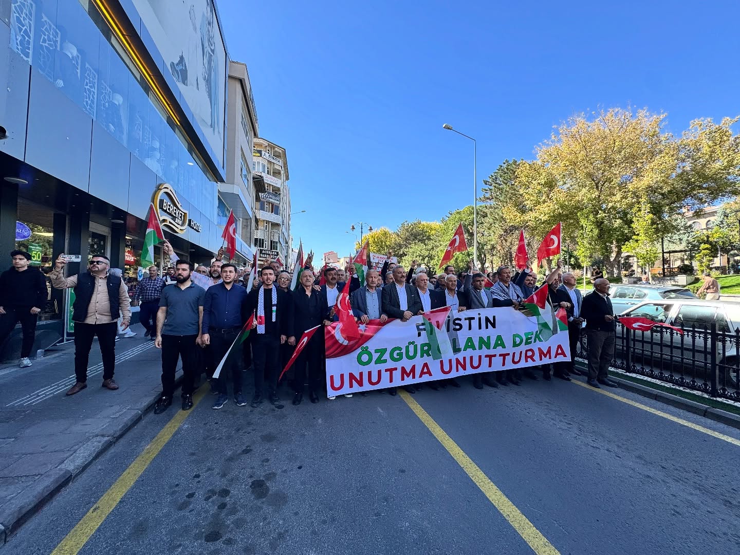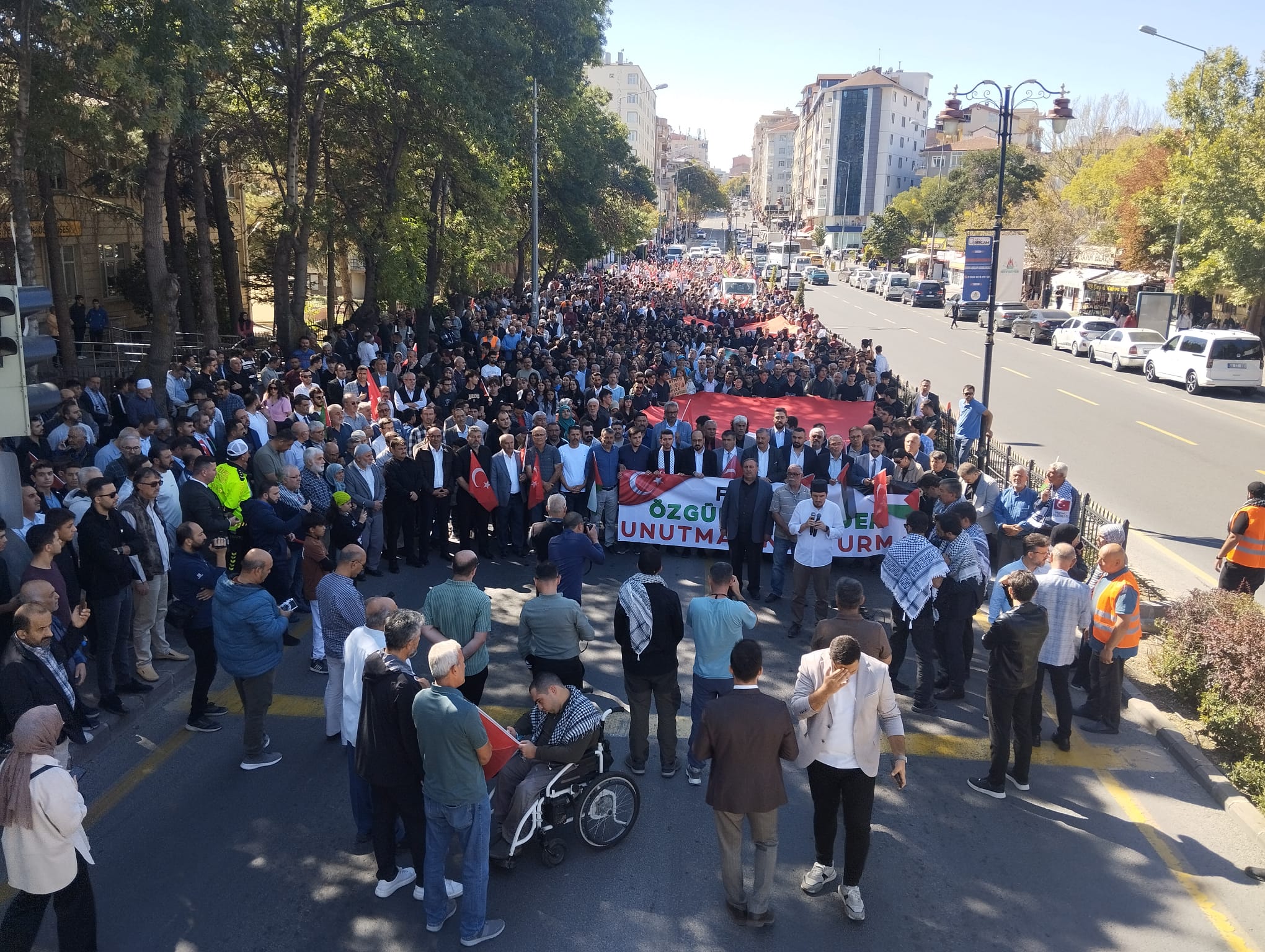 Katılımcılar, ellerinde Türk ve Filistin bayrakları taşıyarak, “Filistin’e özgürlük”, “Gazze yalnız değildir” ve “Zulme sessiz kalma” sloganları attı. Yürüyüşte taşınan pankartlarda “Filistin özgür olana dek unutma unutturma”, “Gazze’de soykırım var” ve “Filistin’in yanındayız” ifadeleri yer aldı.