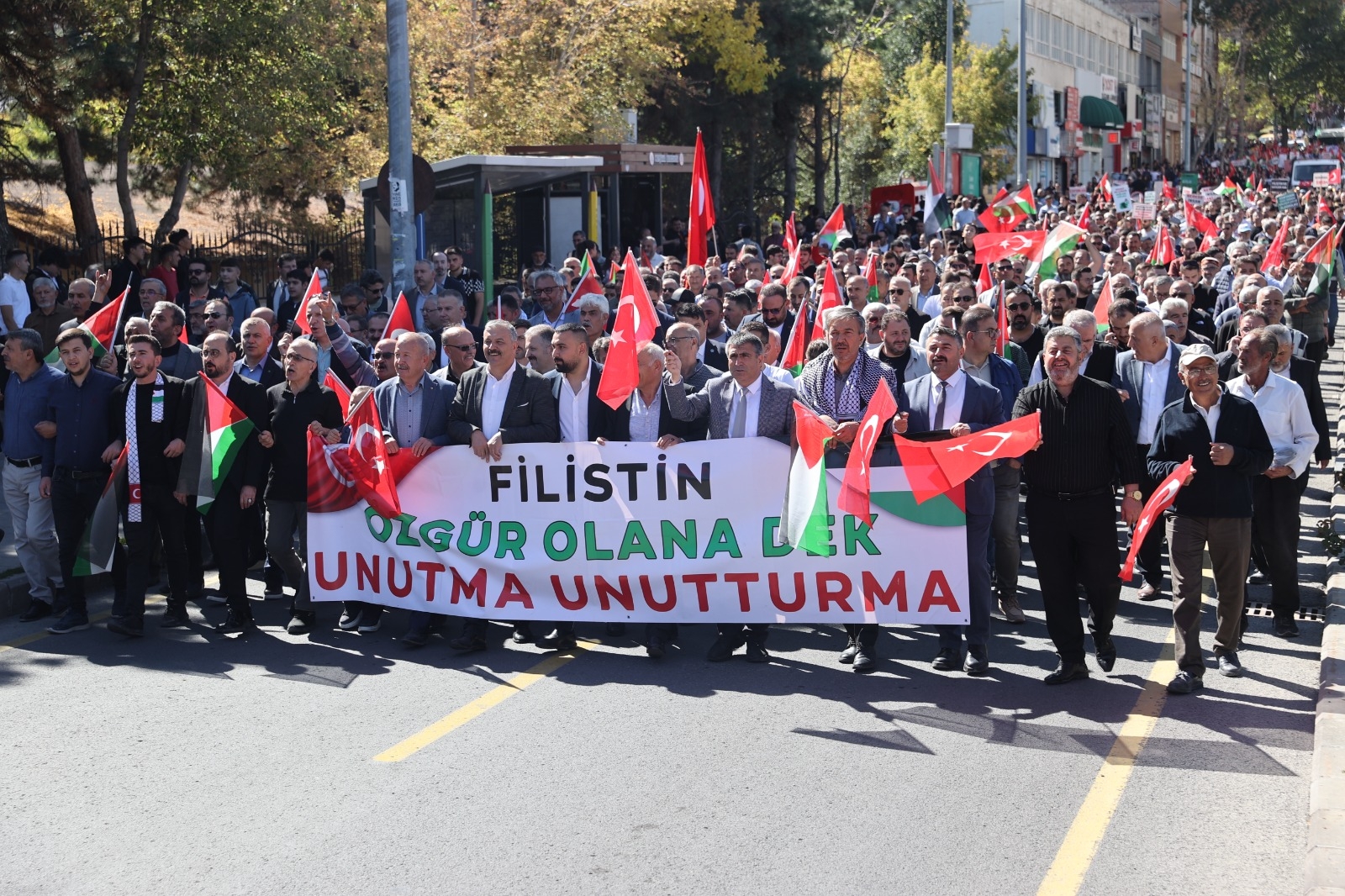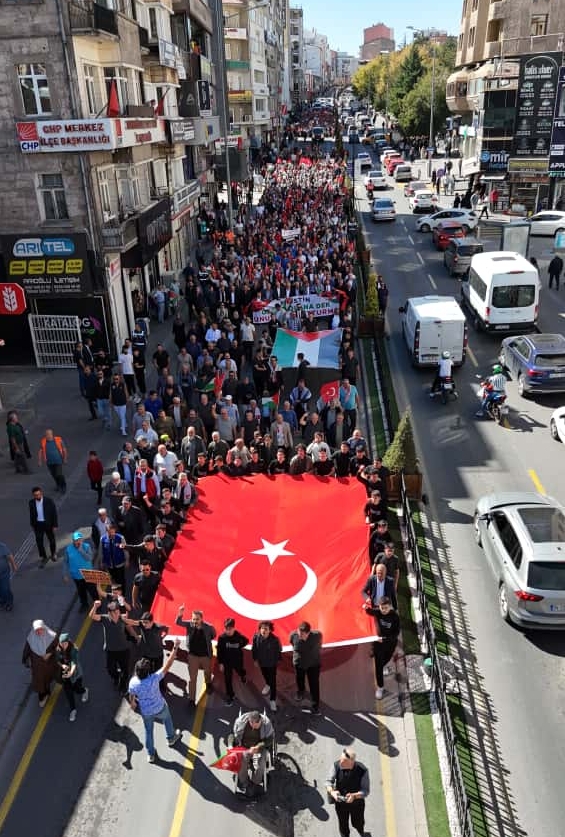 Nevşehir, Filistin’e destek için düzenlenen yürüyüşte tekbir sesleri ve “Özgür Filistin” sloganlarıyla yankılandı.
