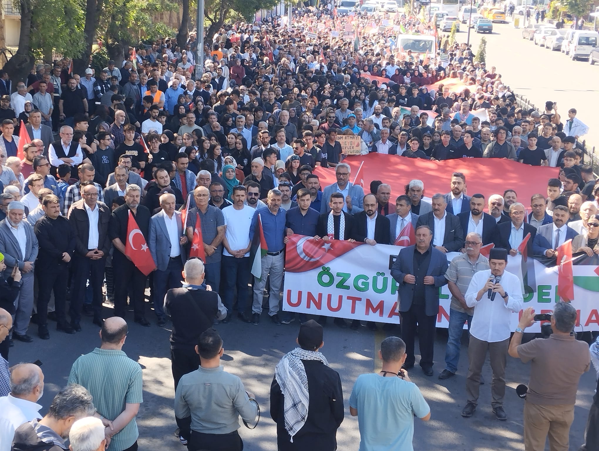 Yürüyüşe katılan vatandaşlar, Gazze’de yaşanan insani dramın son bulması ve Filistin’in özgürlüğüne kavuşması temennisinde bulundu.