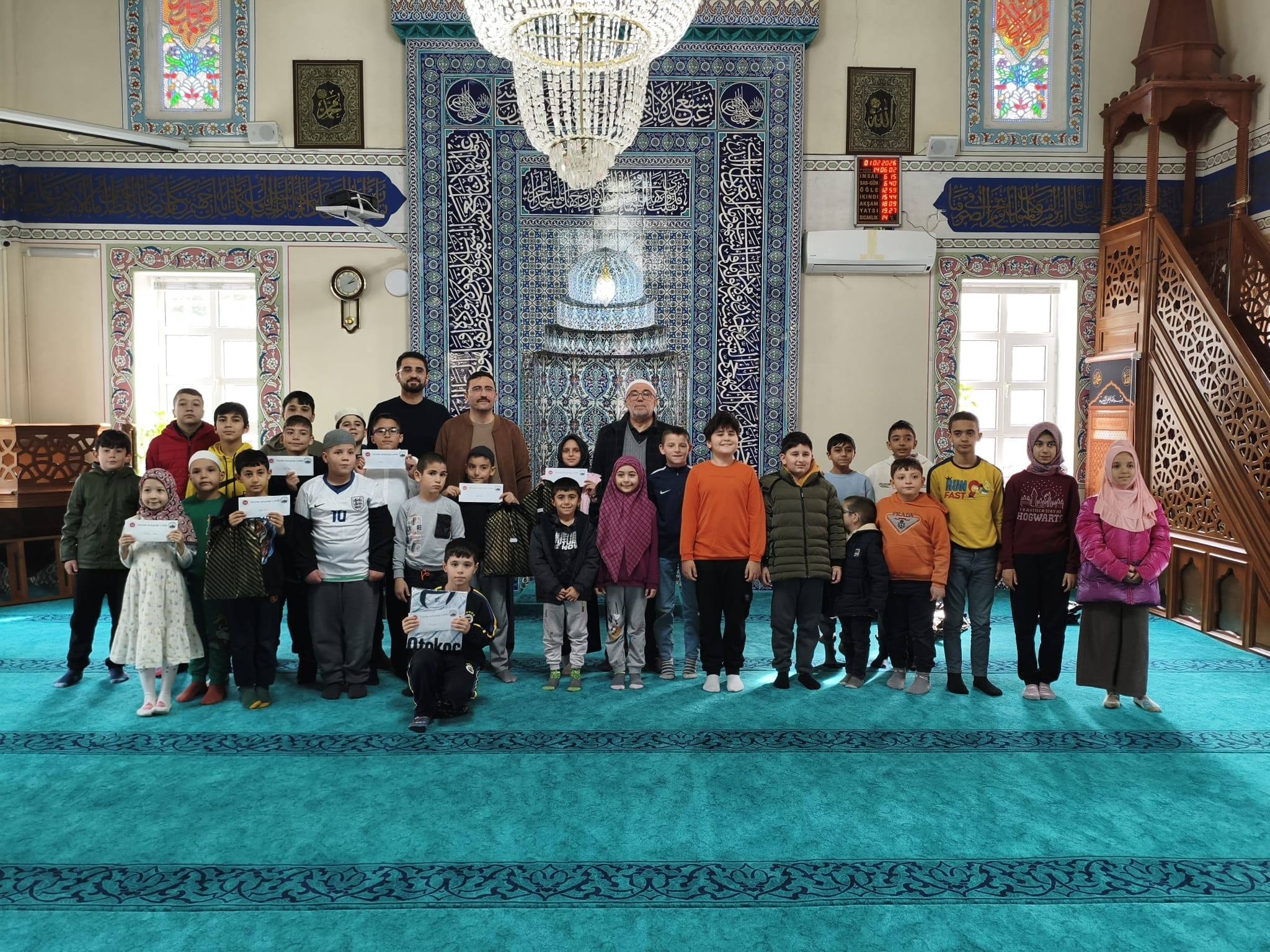 Program sonunda dereceye giren çocuklara ödülleri takdim edilirken, belirlenen puana ulaşan tüm çocuklara da farklı hediyeler verildi. Etkinlik, çocukların ibadet bilincini pekiştirirken, cami ortamını sevdiren bir anlayışla gerçekleştirildi.