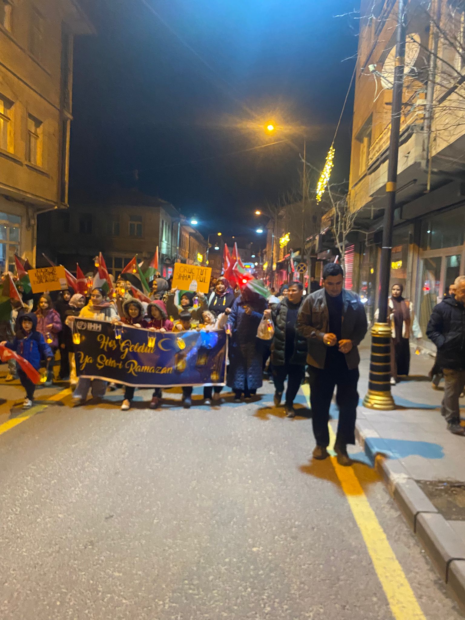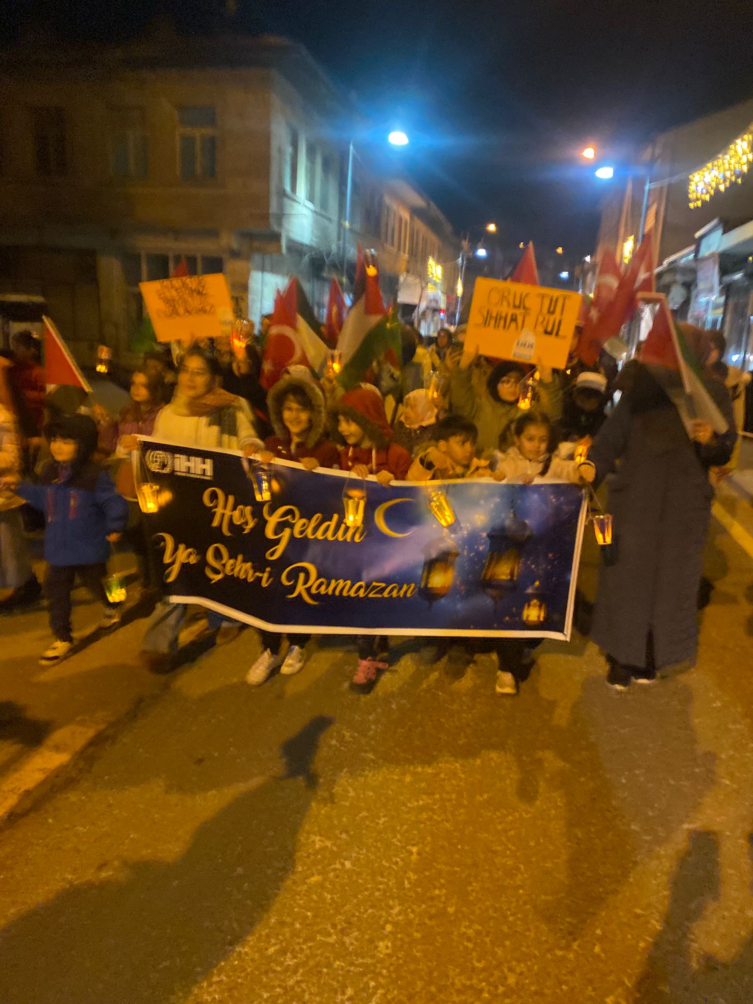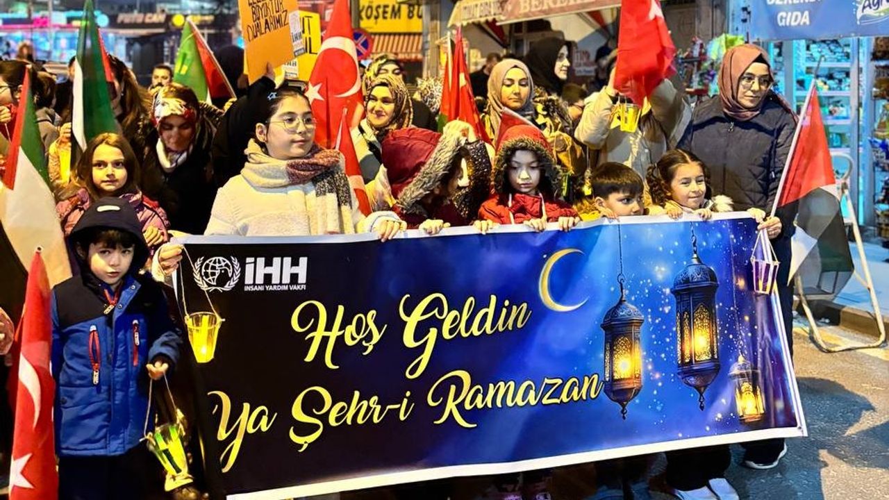 Aileleriyle birlikte yürüyüşe katılan çocuklar, renkli görüntüler oluşturdu. Ramazan’ın rahmet, bereket ve huzurunu simgeleyen ışıklarla gerçekleştirilen yürüyüş, Atatürk Caddesi’nden başlayarak Kurşunlu Camii’ne kadar devam etti.