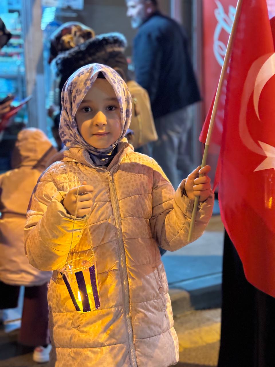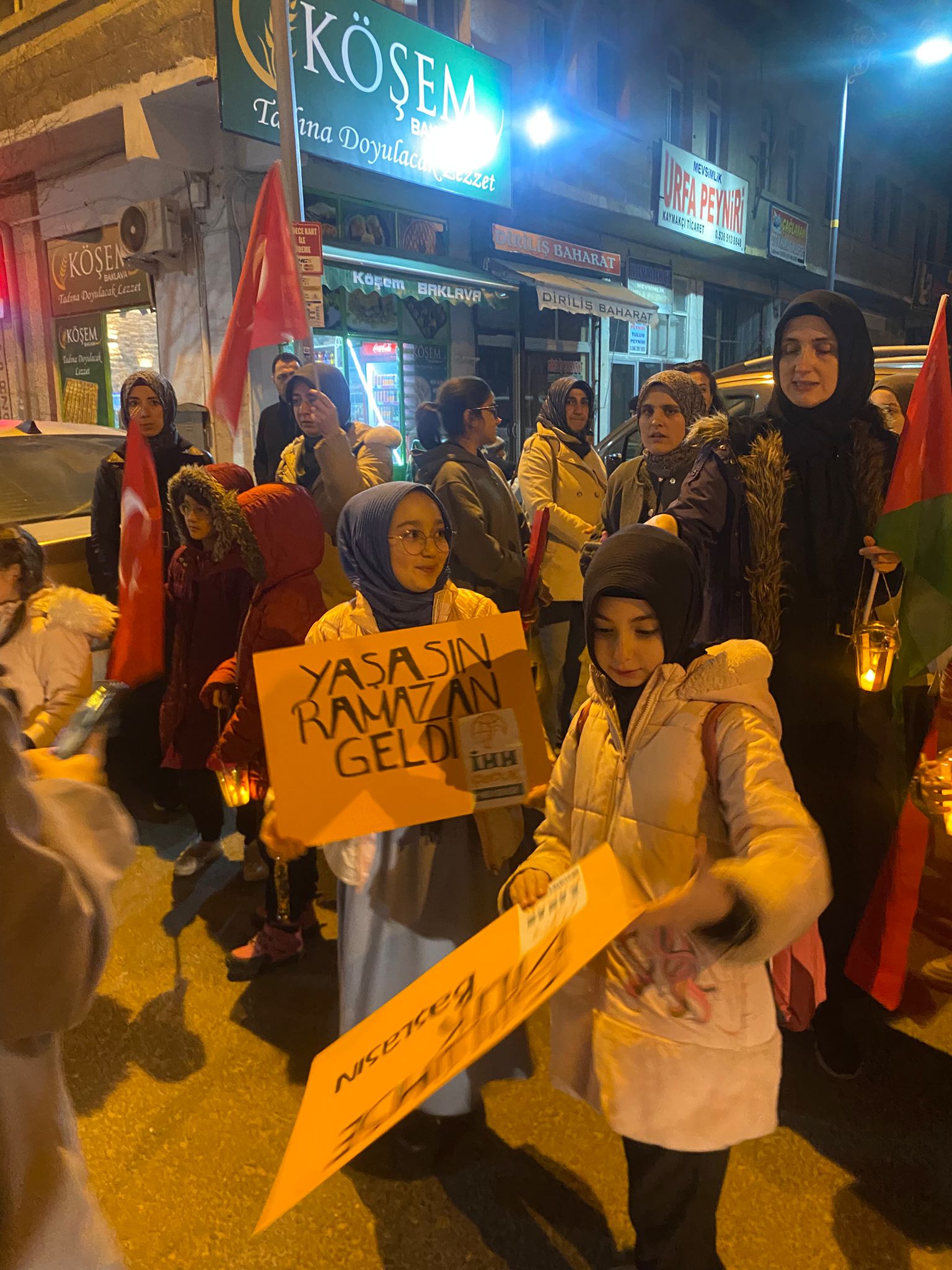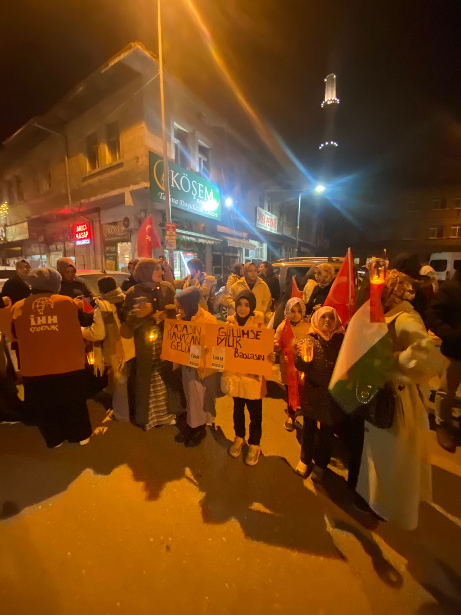 Aileleriyle birlikte yürüyüşe katılan çocuklar, renkli görüntüler oluşturdu. Ramazan’ın rahmet, bereket ve huzurunu simgeleyen ışıklarla gerçekleştirilen yürüyüş, Atatürk Caddesi’nden başlayarak Kurşunlu Camii’ne kadar devam etti.