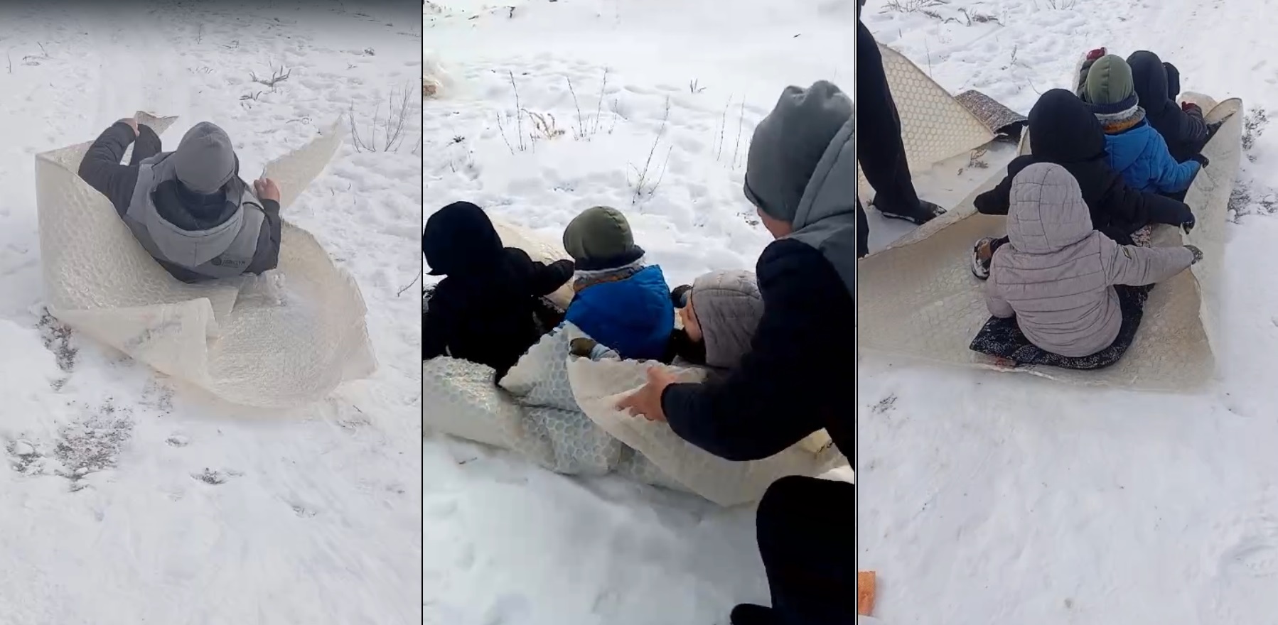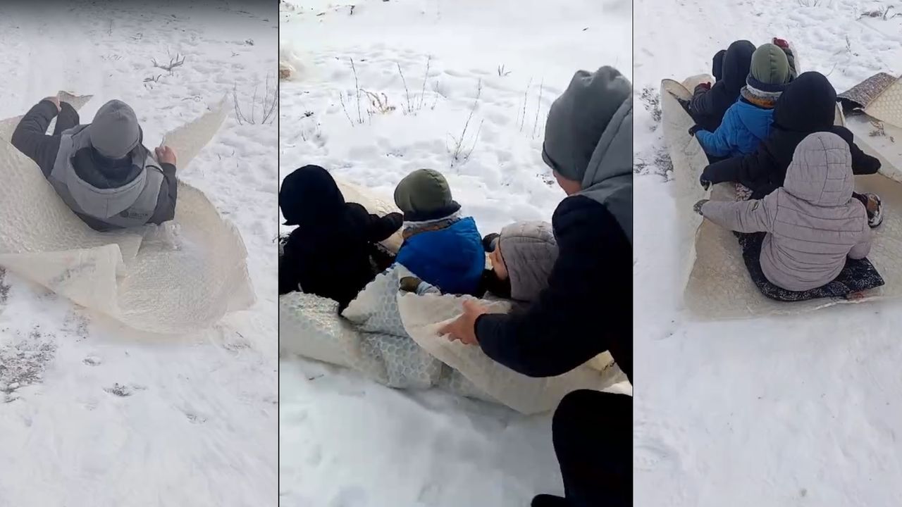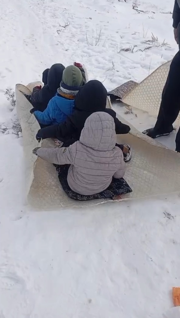 Nevşehir’in Bahçelievler Mahallesi, Kapadokya Forum AVM karşısındaki tepelik alanda yaşanan görüntüler ise izleyenlerin içini ısıttı. Tatil için dedelerini ziyarete gelen torunlar, Dedeleri Doğan Dede ile birlikte yanlarına aldıkları plastik poşetlerle kayarak karın tadını çıkardı.
