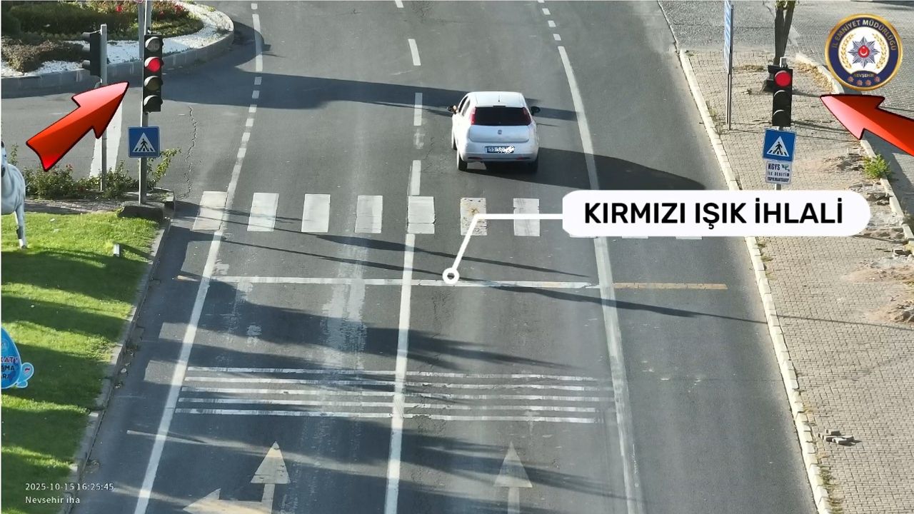 Nevşehir'de yapılan denetimlerde kırmızı ışık ihlali ve Emniyet şeridi ihlali yapan sürücüler teker teker tespit edildi.