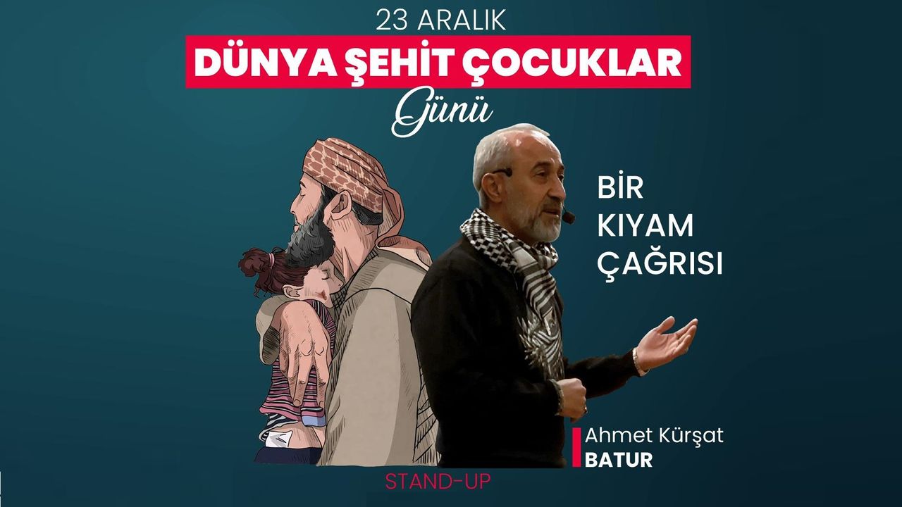 Stand-Up gösterisi ve ezgilerle Ahmet Kürşat BATUR, “Dünya Şehit Çocuklar Günü ve KUDÜS bize ne söyler " adlı sunum yapacak..