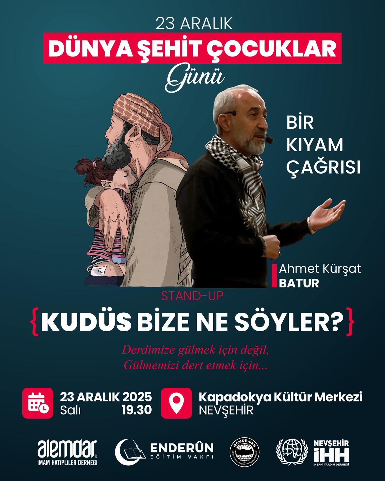 Nevşehirde Enderun Eğitim Vakfı tarafından, “Dünya Şehit Çocuklar Günü” dolayısıyla önemli bir programa evsahipliği yapacak.