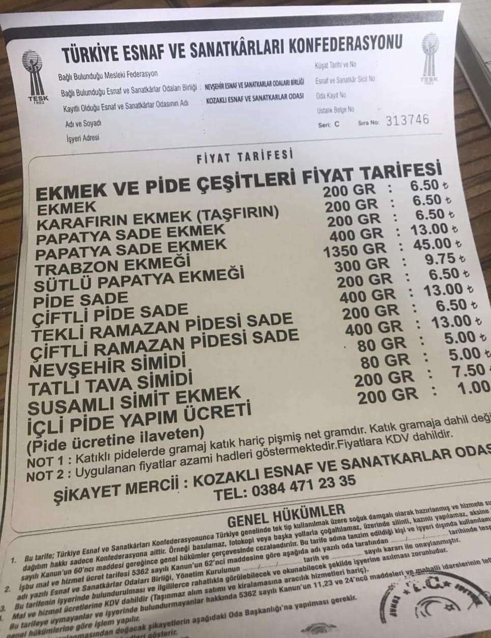 Edinilen bilgilere göre, artan maliyetler Nevşehir'de ekmek fiyatlarının da artmasına neden oldu.