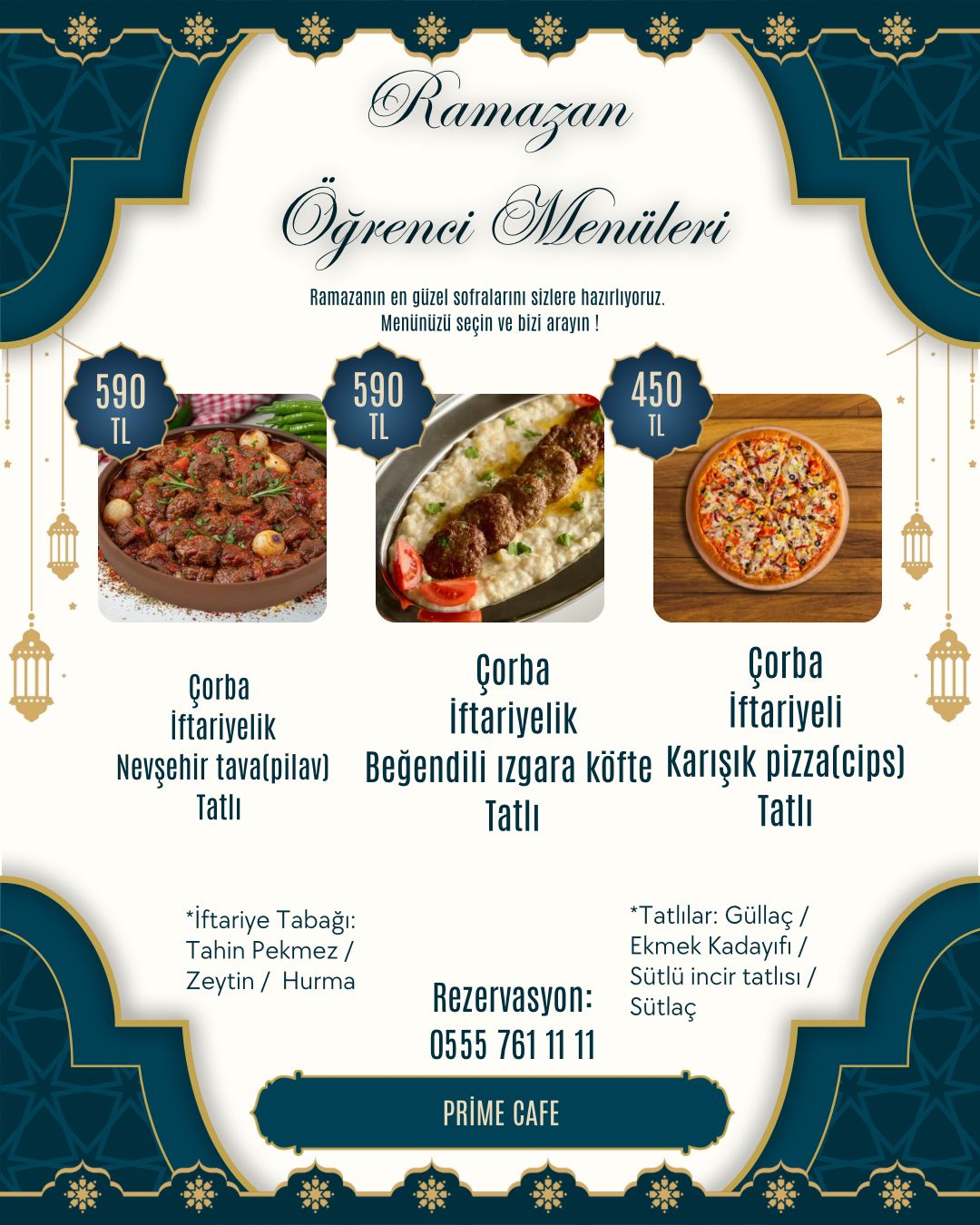 Samimi atmosferi, modern konsepti ve özenli sunumlarıyla bilinen Prime Cafe; aileler, dost grupları ve öğrenciler için hazırladığı zengin Ramazan menüleriyle misafirlerini ağırlamaya başladı. Hem doyurucu hem de bütçe dostu seçenekler sunan işletme, Ramazan ayı boyunca Nevşehirlilerin vazgeçilmez buluşma noktalarından biri olmayı hedefliyor.