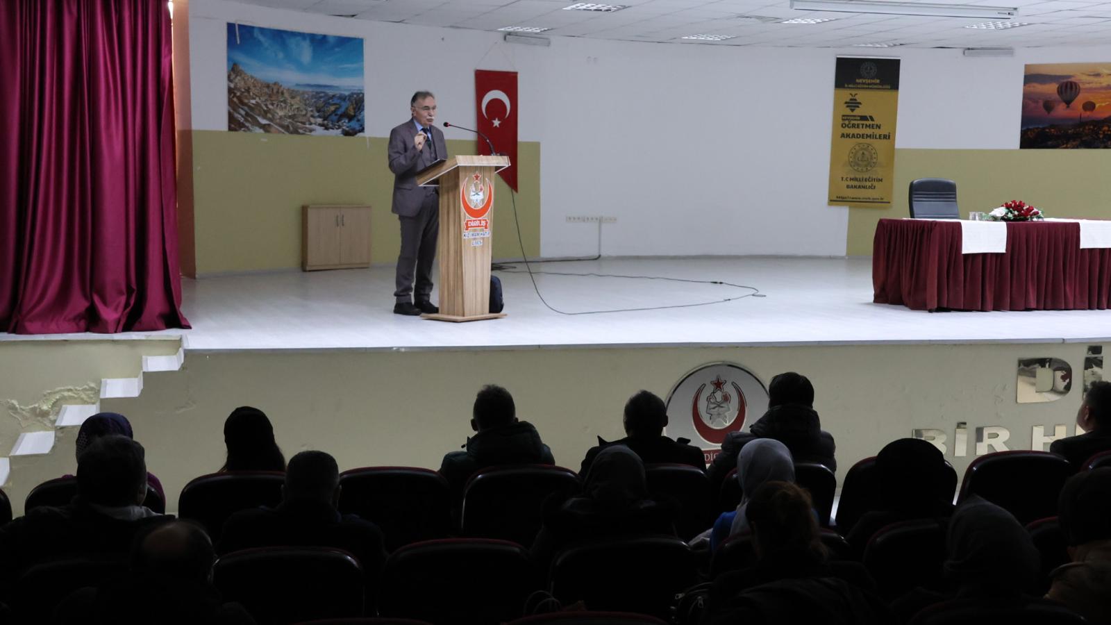 Diriliş Kız Anadolu İmam Hatip Lisesi Konferans Salonu’nda gerçekleştirilen programa; Nevşehir İl Millî Eğitim Müdürü Yusuf Yazıcı, şube müdürleri ve çok sayıda öğretmen katılım sağladı.