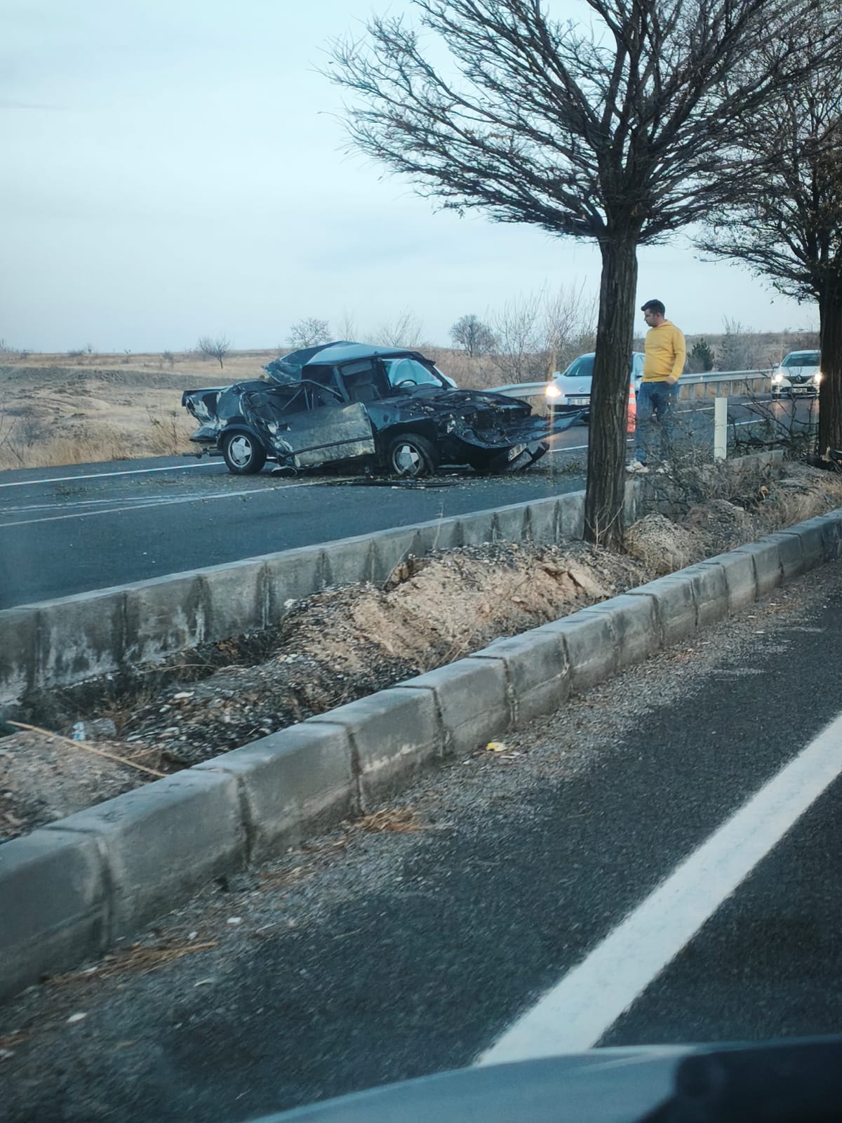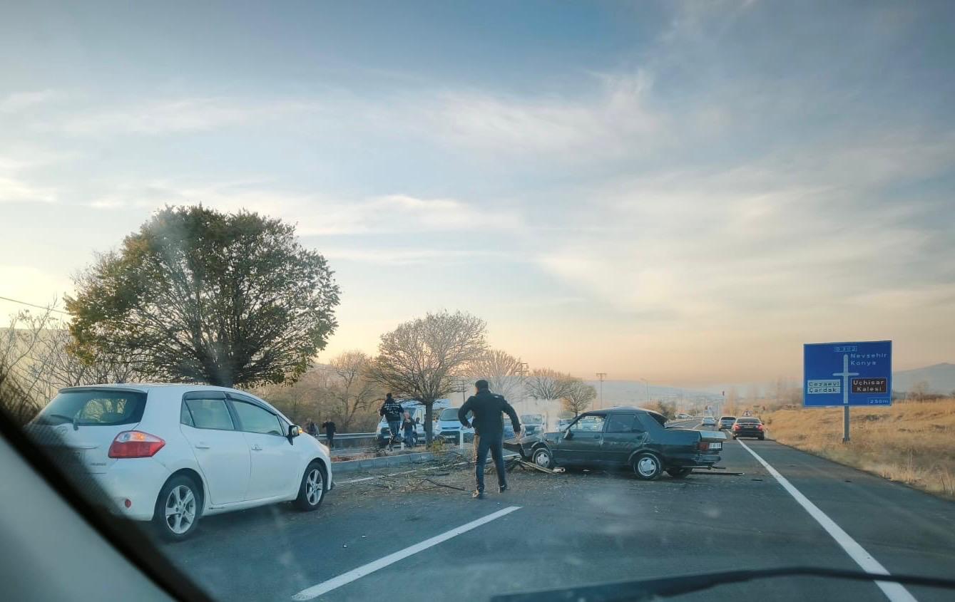 Edinilen bilgilere göre, Uçhisar Cezaevi kavşağı istikametinde seyir halinde olan otomobil, sürücüsünün direksiyon hakimiyetini kaybetmesi sonucu yoldan çıktı. Kontrolden çıkan araç, orta refüjde bulunan ağacı devirerek şiddetli şekilde durdu.