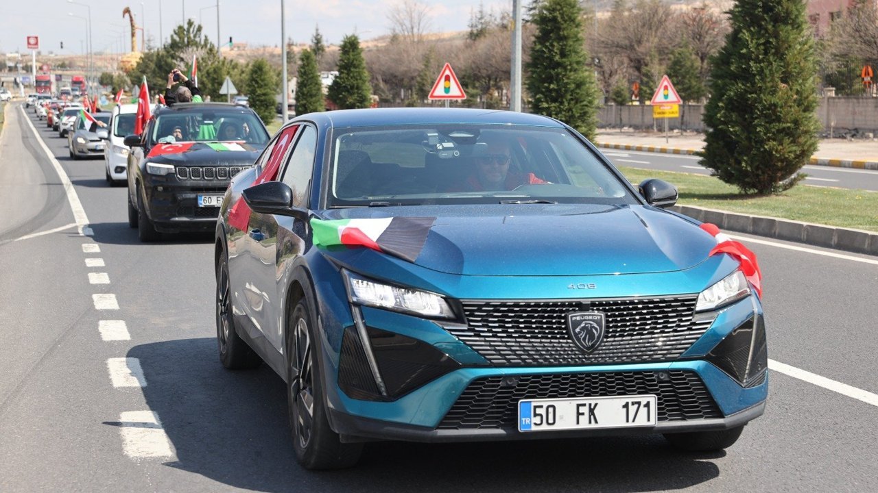 İHH İnsani Yardım Vakfı öncülüğünde bir araya gelen vatandaşlar, Türk ve Filistin bayraklarıyla araçlarını süsleyerek Nevşehir Hacı Bektaş Veli Üniversitesi önünden hareket etti. Konvoy, Nevşehir Külliyesi Hacı Süleyman Köybaşı Camii’ne kadar devam etti.