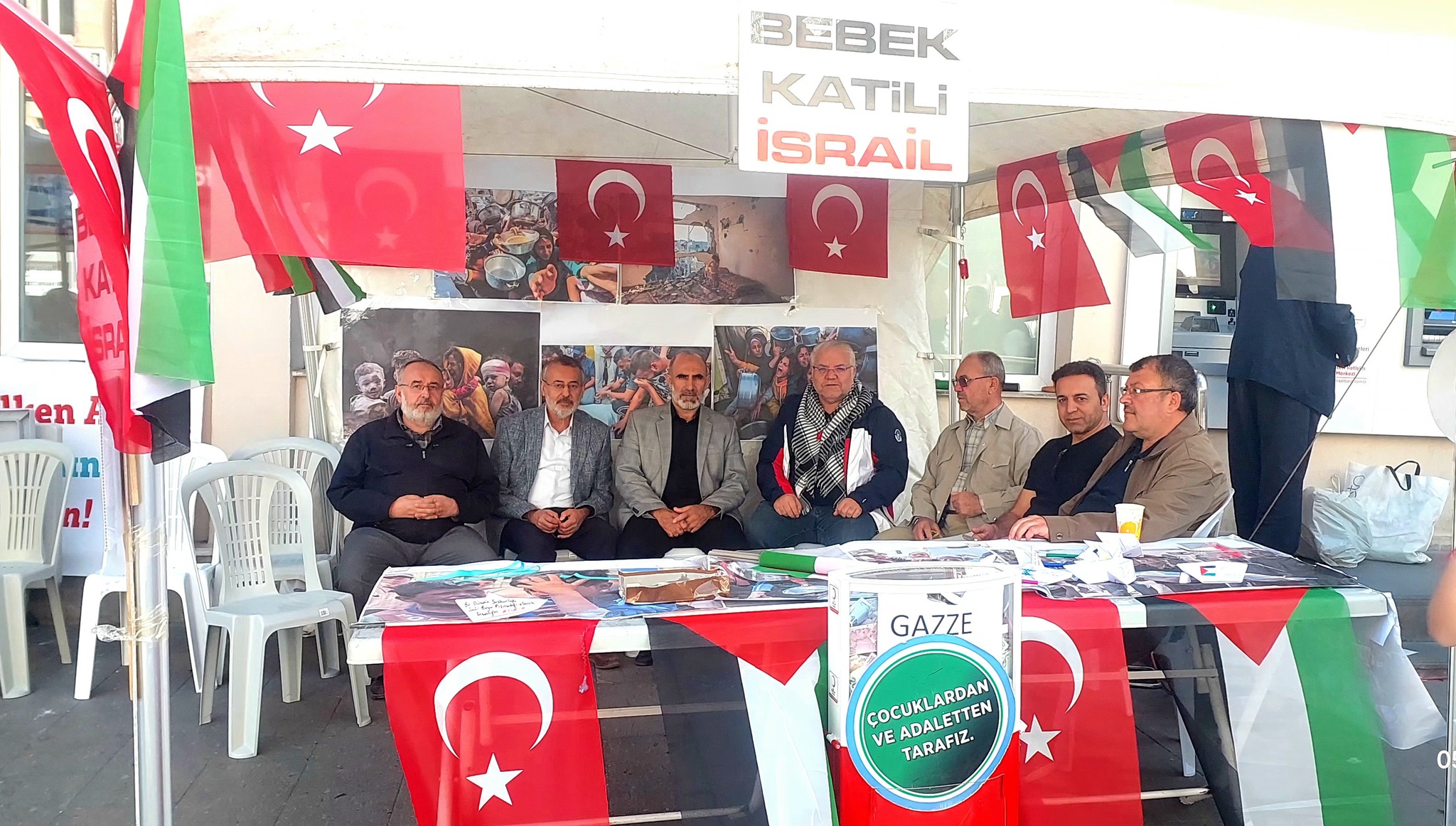 Etkinlikte terör devleti İsrail’in saldırıları ve insani yardım taşıyan Küresel Sumud Filosu’na yönelik müdahaleler protesto edildi. Nevşehir'de Ziraat Bankası önünde kurulan çadırda STK üyeleri ve gönüllüler günlük 12 saat nöbet tutarak, Filistin halkı için maddi ve manevi destek çağrısında bulundu.