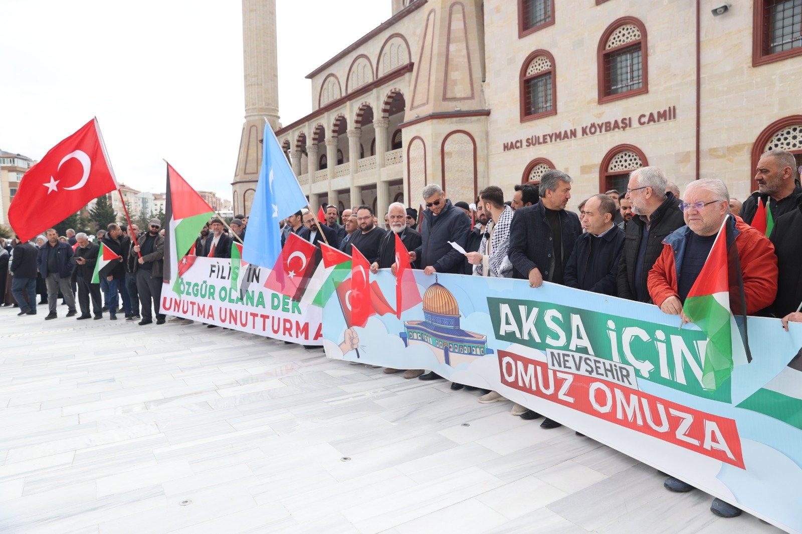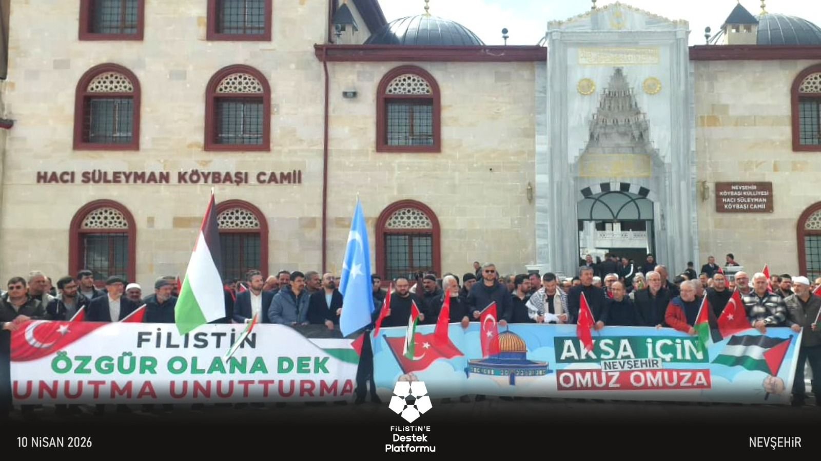 Nevşehir Külliyesi Hacı Süleyman Köybaşı Camii önünde yapılan açıklamaya platform üyeleri ve vatandaşlar katıldı. Açıklamada, Gazze başta olmak üzere Filistin, Lübnan ve İran’da yaşanan gelişmelere dikkat çekilerek uluslararası kamuoyuna çağrıda bulunuldu.