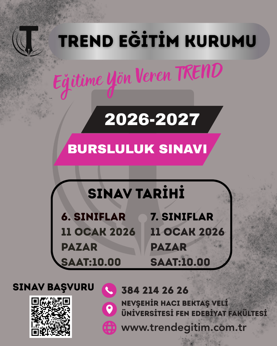 Nevşehir'de Trend Eğitim Kurumu, 6. ve 7. sınıf öğrencilerine yönelik özel bursluluk sınavı ile şehrin eğitimde parlayan genç yıldızlarını keşfetmeye hazırlanıyor.