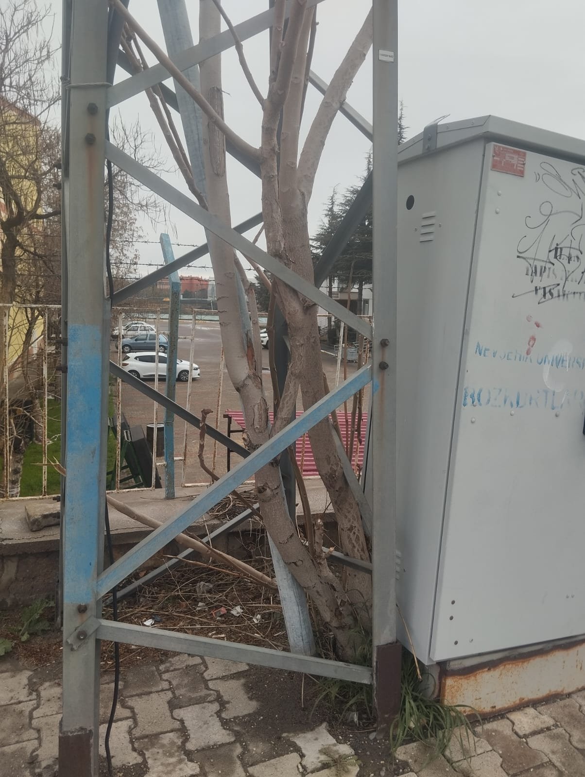 Nevşehir’de Şaşkına Çeviren Manzara: Direğin İçinden Ağaç Çıktı