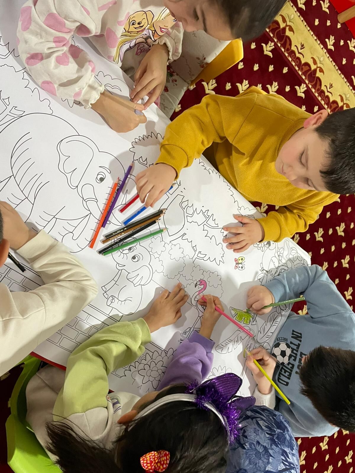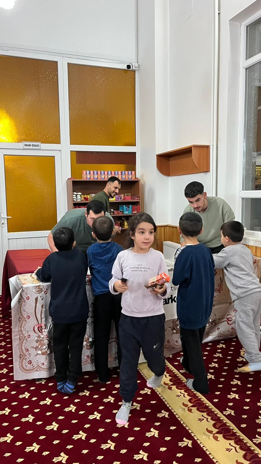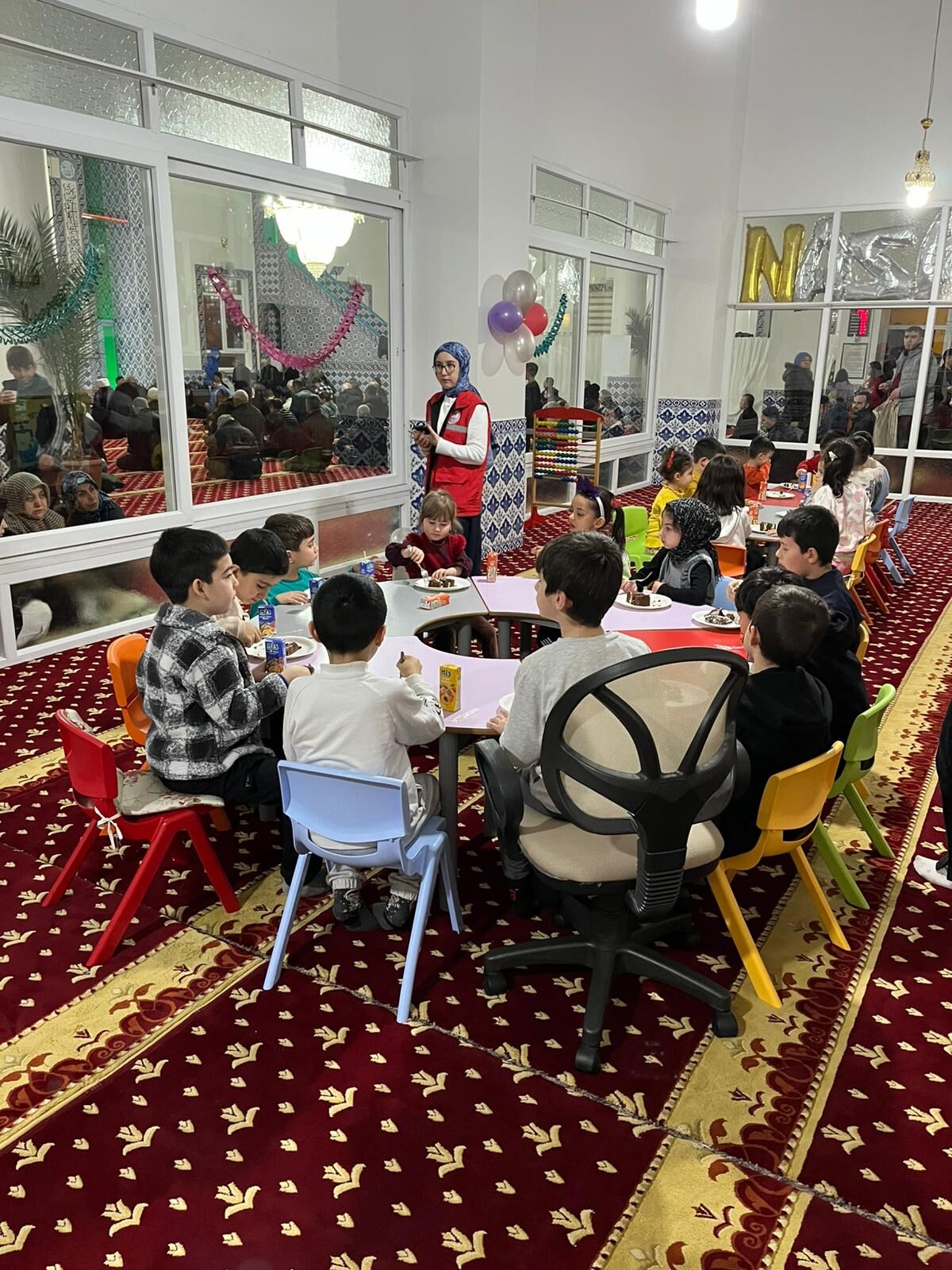 Teravih namazı sırasında ebeveynler ibadetlerini huzur içinde yerine getirirken, çocuklar için cami bünyesinde güvenli bir oyun alanı oluşturuldu. Böylece minikler hem cami ortamıyla tanışıyor hem de Ramazan coşkusunu neşe içinde yaşıyor.