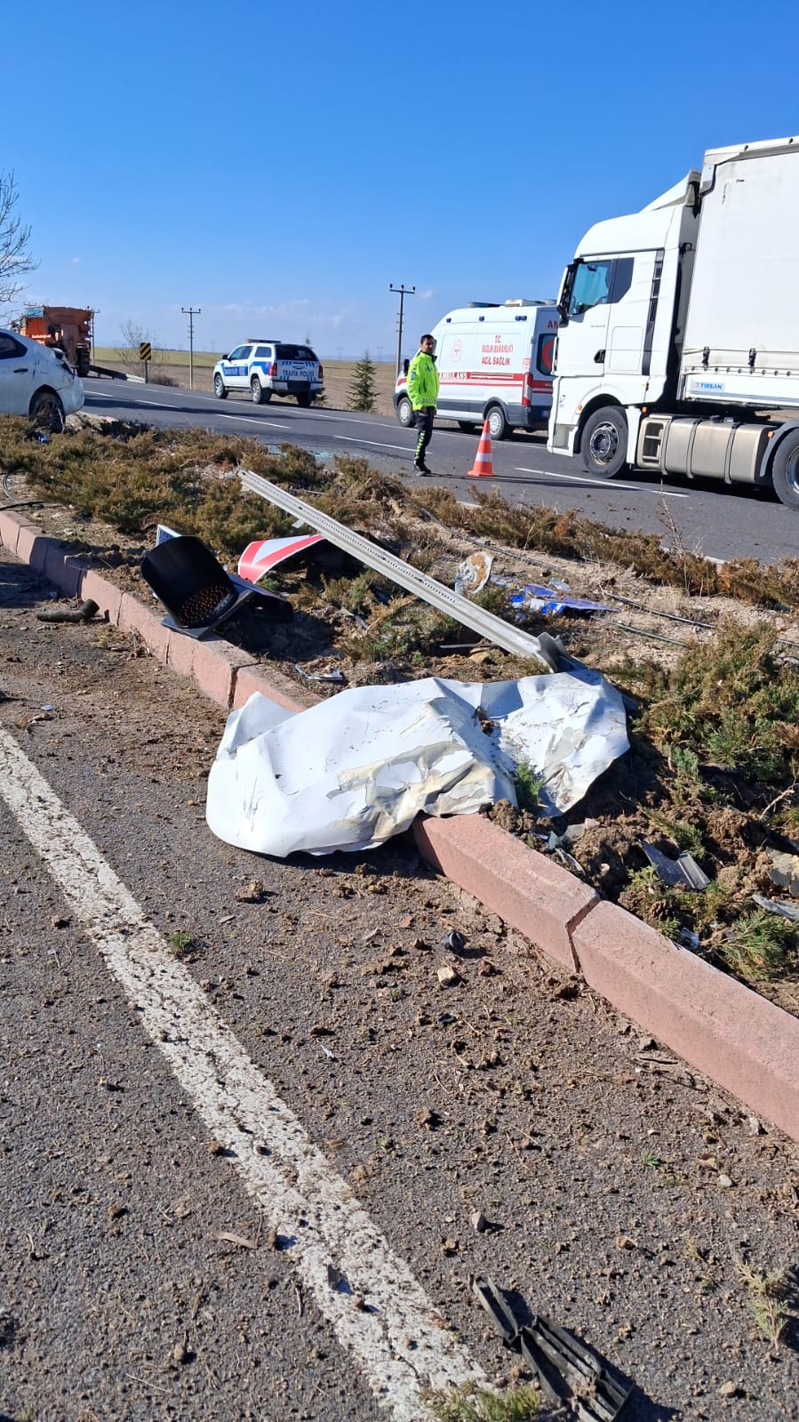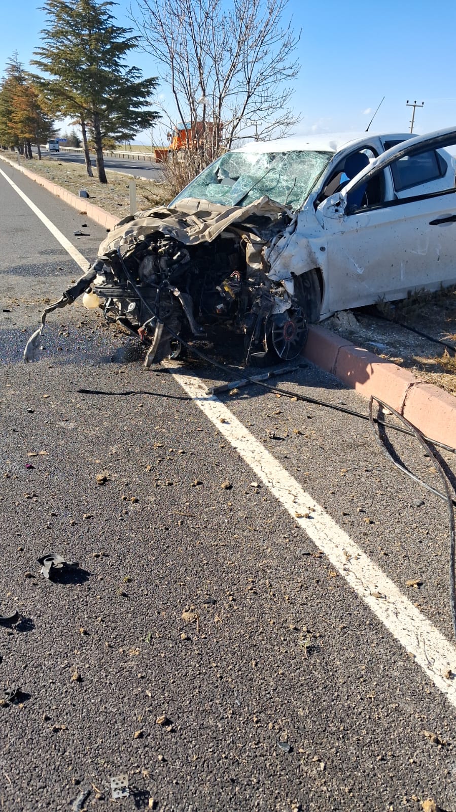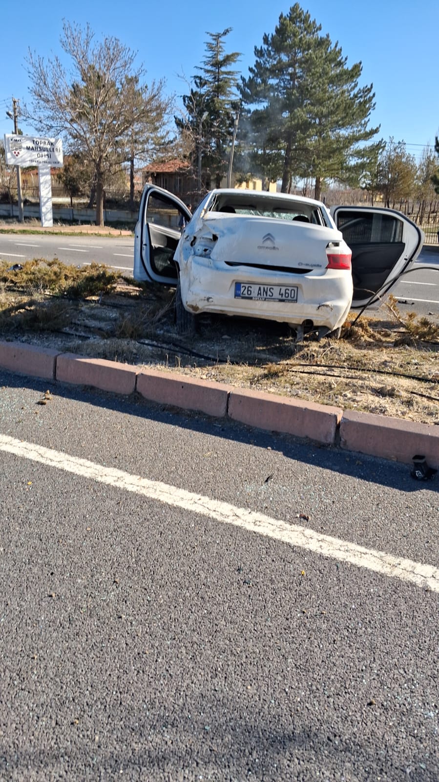 Kazanın etkisiyle refüjdeki levhalar ve ağaçlar devrilirken, otomobilde büyük çapta maddi hasar oluştu. Çevrede bulunan vatandaşların ihbarı üzerine olay yerine sağlık ve polis ekipleri sevk edildi.