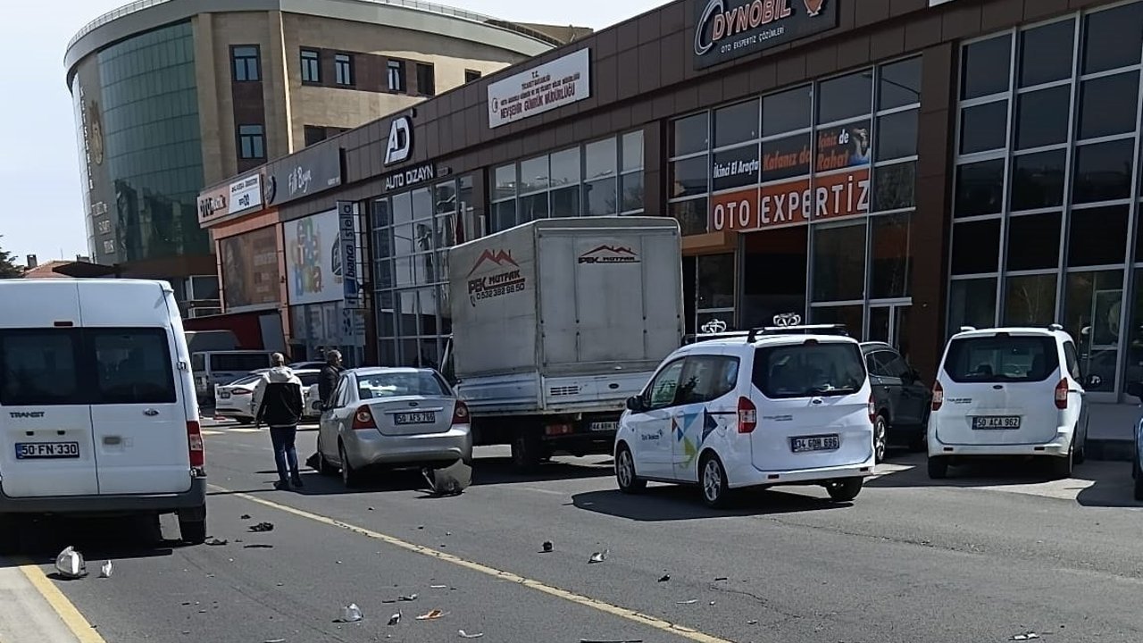 Edinilen bilgilere göre, Fevzi Çakmak Caddesi üzerinde seyir halinde olan 50 FN 330 plakalı transit minibüs ile 50 AFS 766 plakalı otomobil, Kapadokya Kültür Merkezi karşısında çarpıştı. Çarpmanın etkisiyle her iki araçta da maddi hasar meydana geldi.
