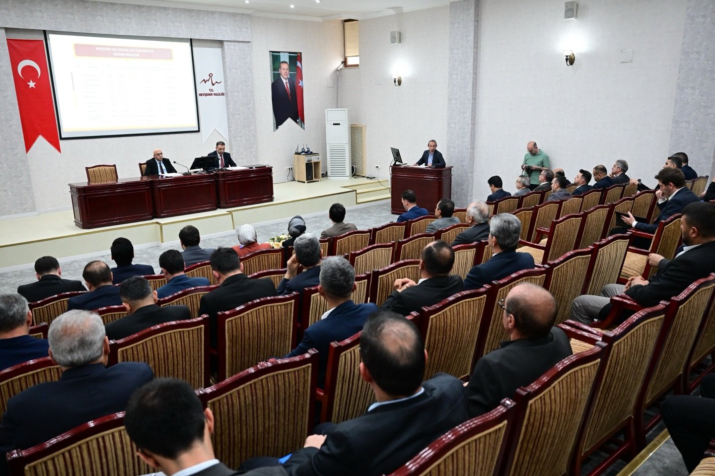 Nevşehir Valiliği Konferans Salonu’nda düzenlenen toplantıya kaymakamlar, belediye başkanları ile kamu kurum ve kuruluşlarının yöneticileri katıldı.